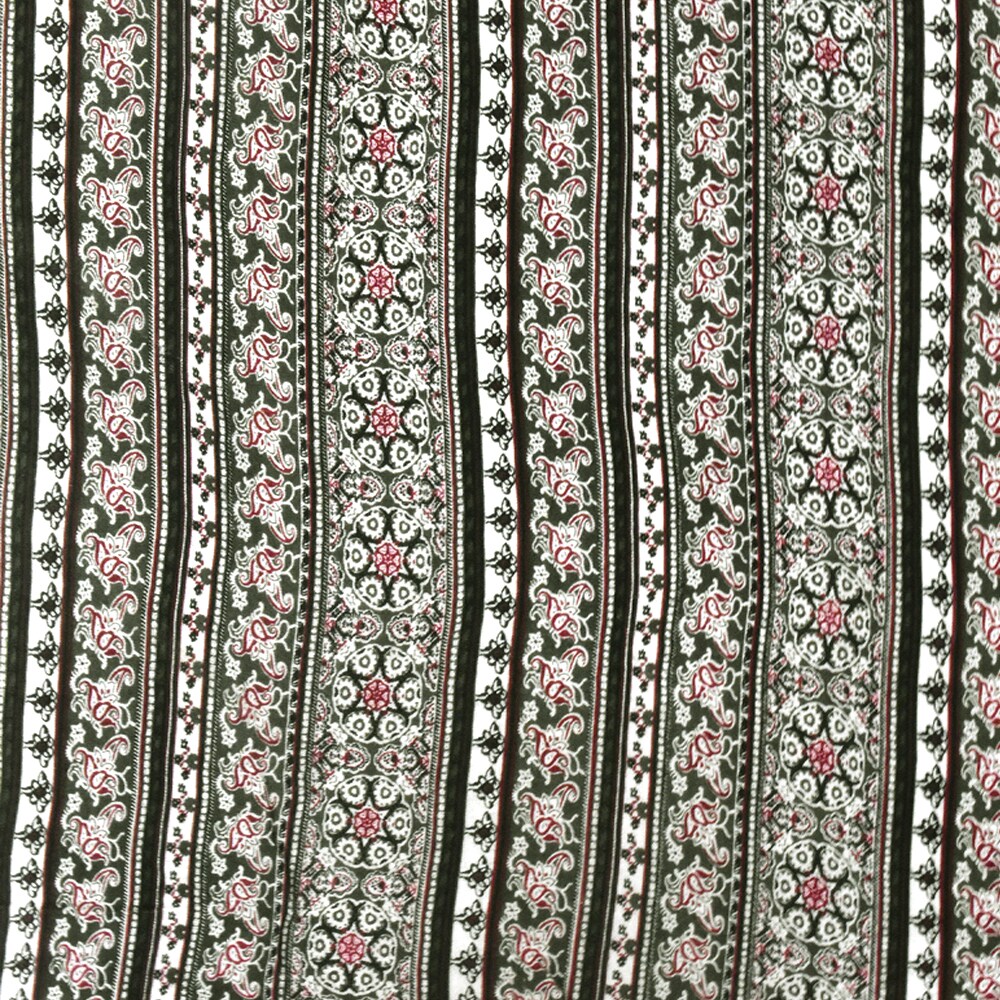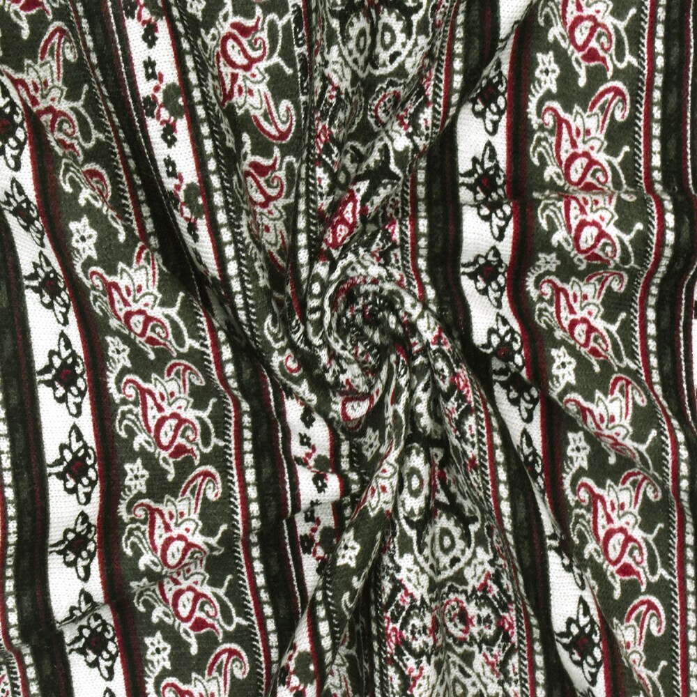 Olive-Multi Mix Pattern Stripe Printed Rayon Stretch Jersey Knit Fabric By the Yard