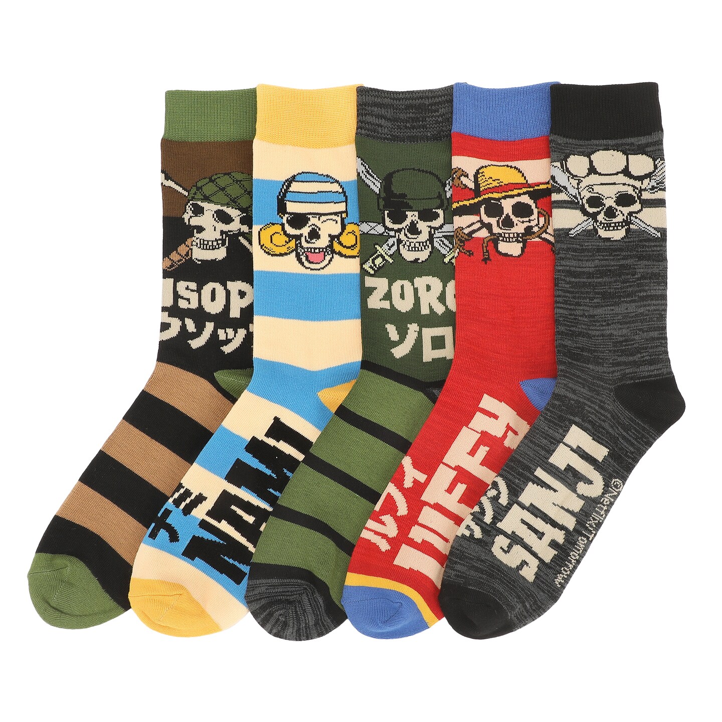 One Piece (Live Action) Luffy, Zoro, Nami, Usopp and Sanji Mens Casual Crew Socks 4 Pack