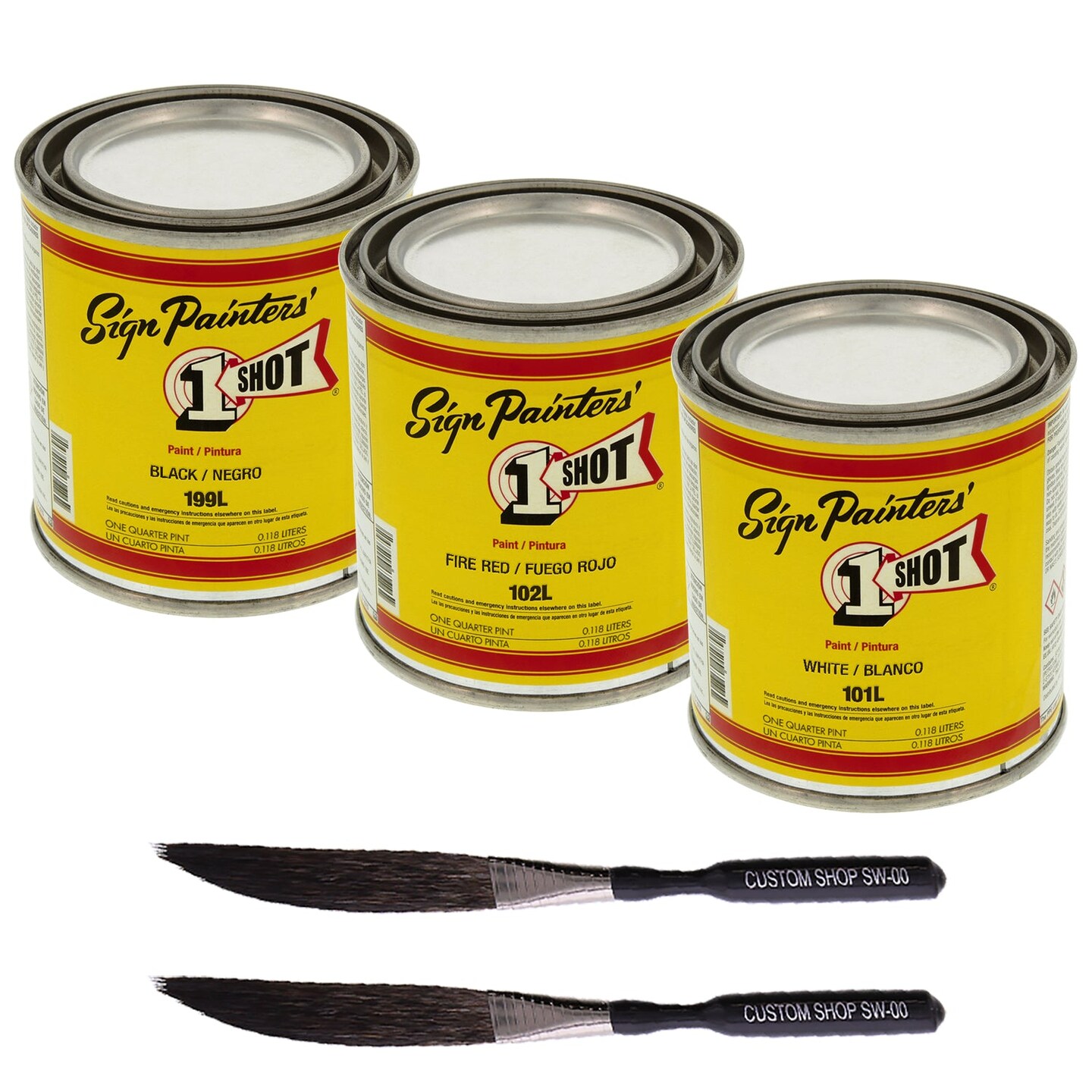 One Shot Quarter Pint - 3 Colors: 101 102, 199, with #00 Sword Pin Striping Brush Set