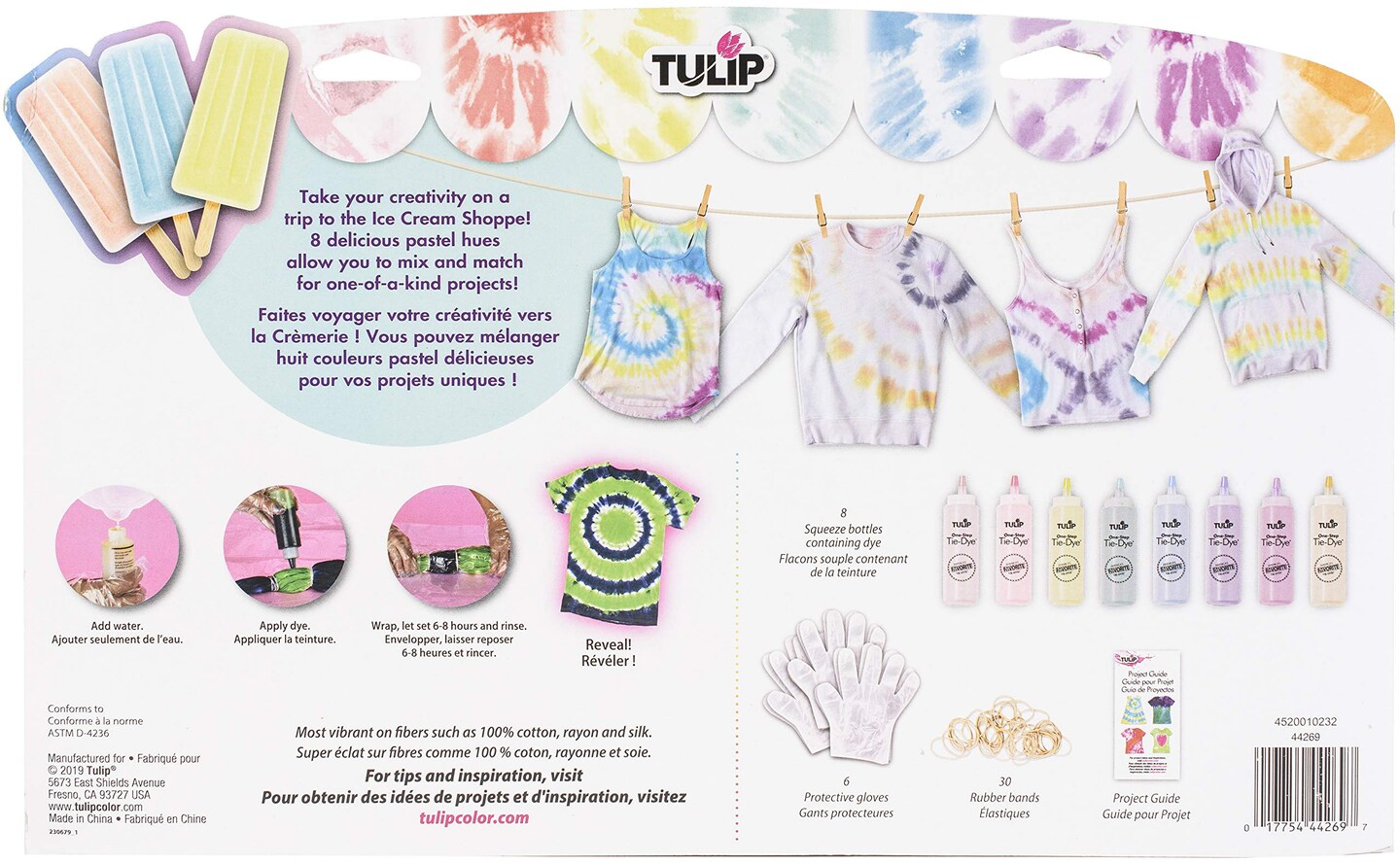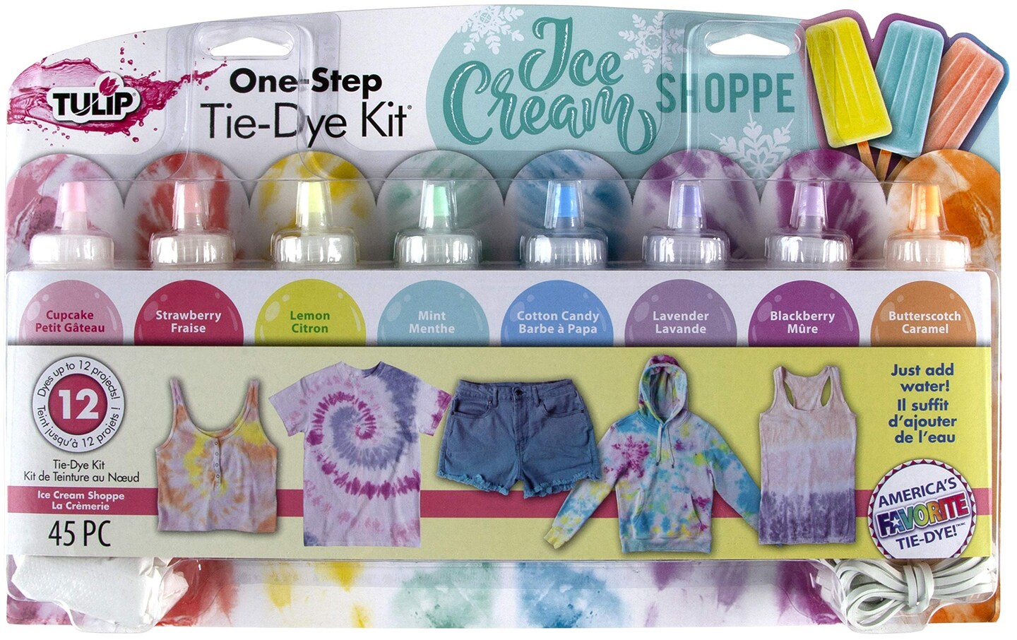 One-Step Tie-Dye Kit Tulip Fabric Dye 44269 Fdy Lg 2.75Oz Ice Cream Shoppe 8-Color Kit, Pastel