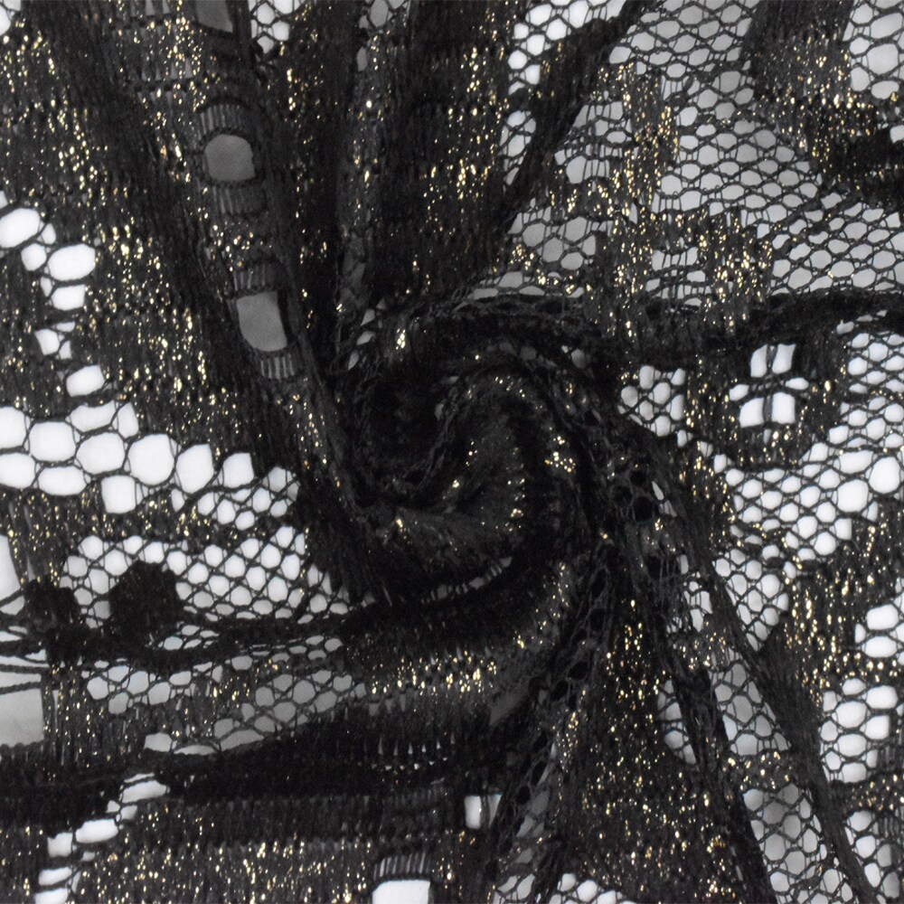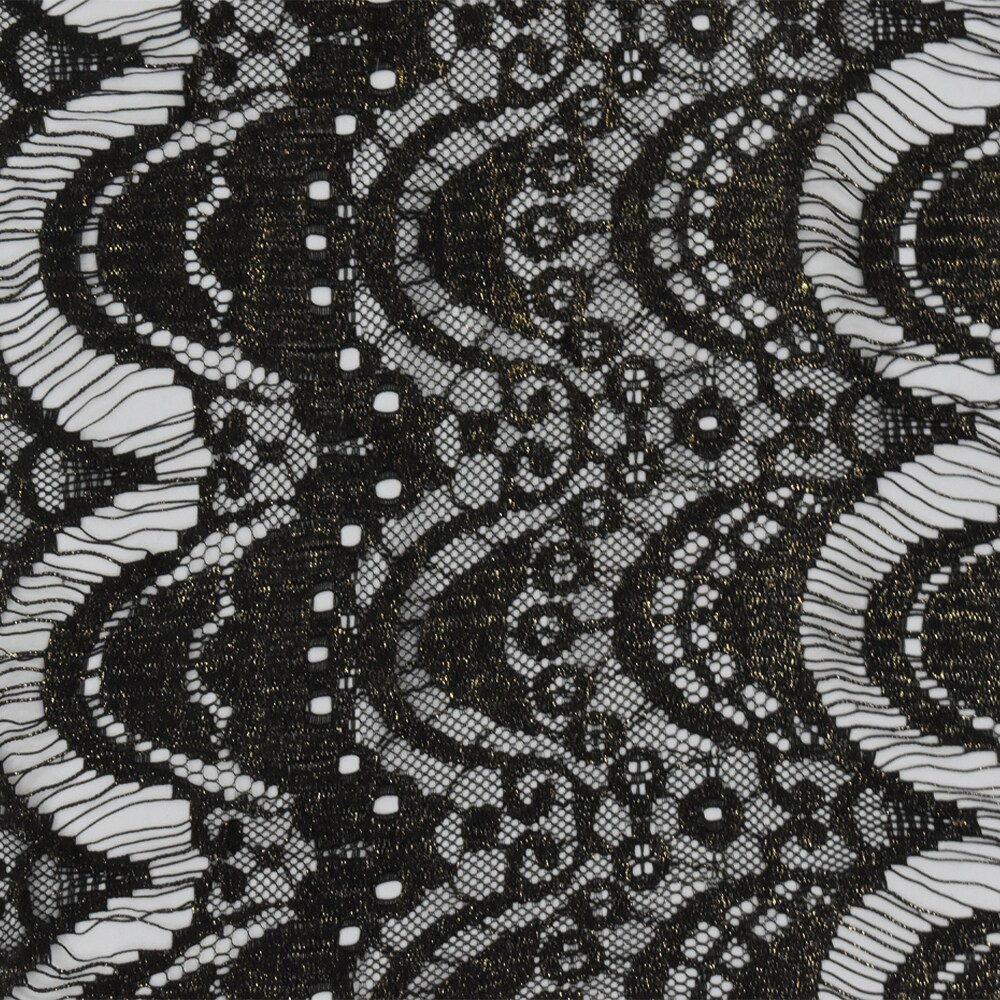Onyx Black-Gold Printed Texture Fancy Scallop Lace Knit Fabric By the Yard