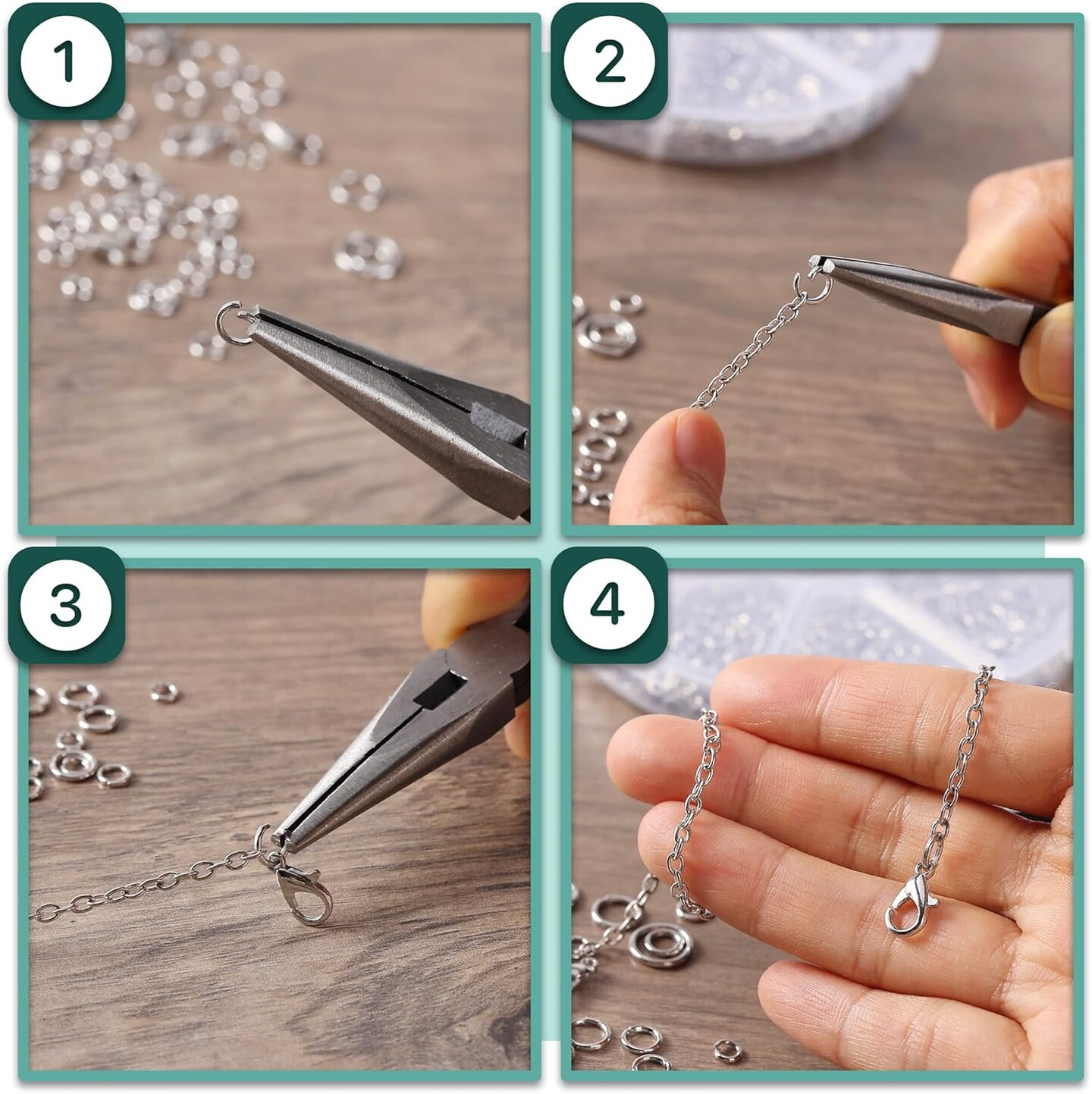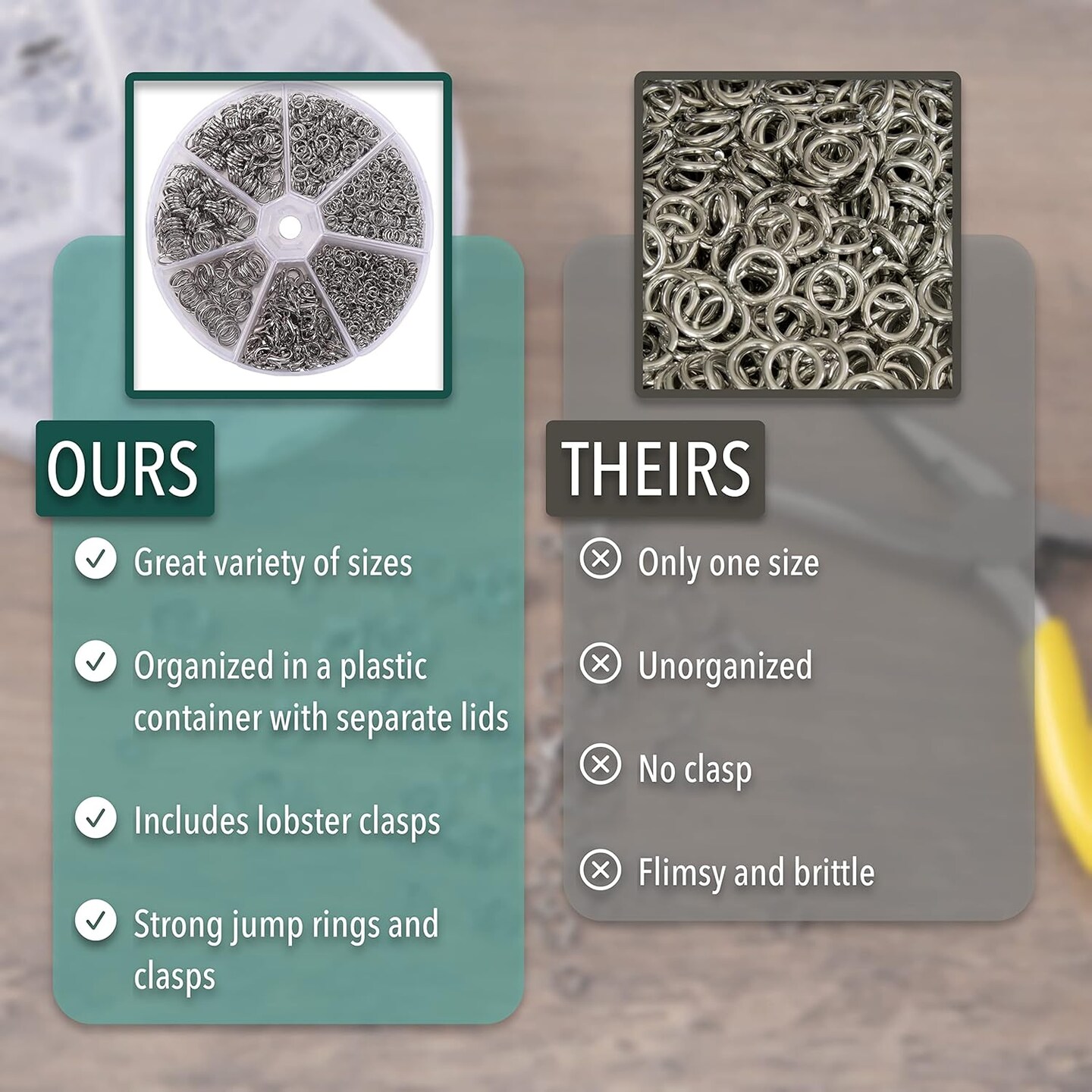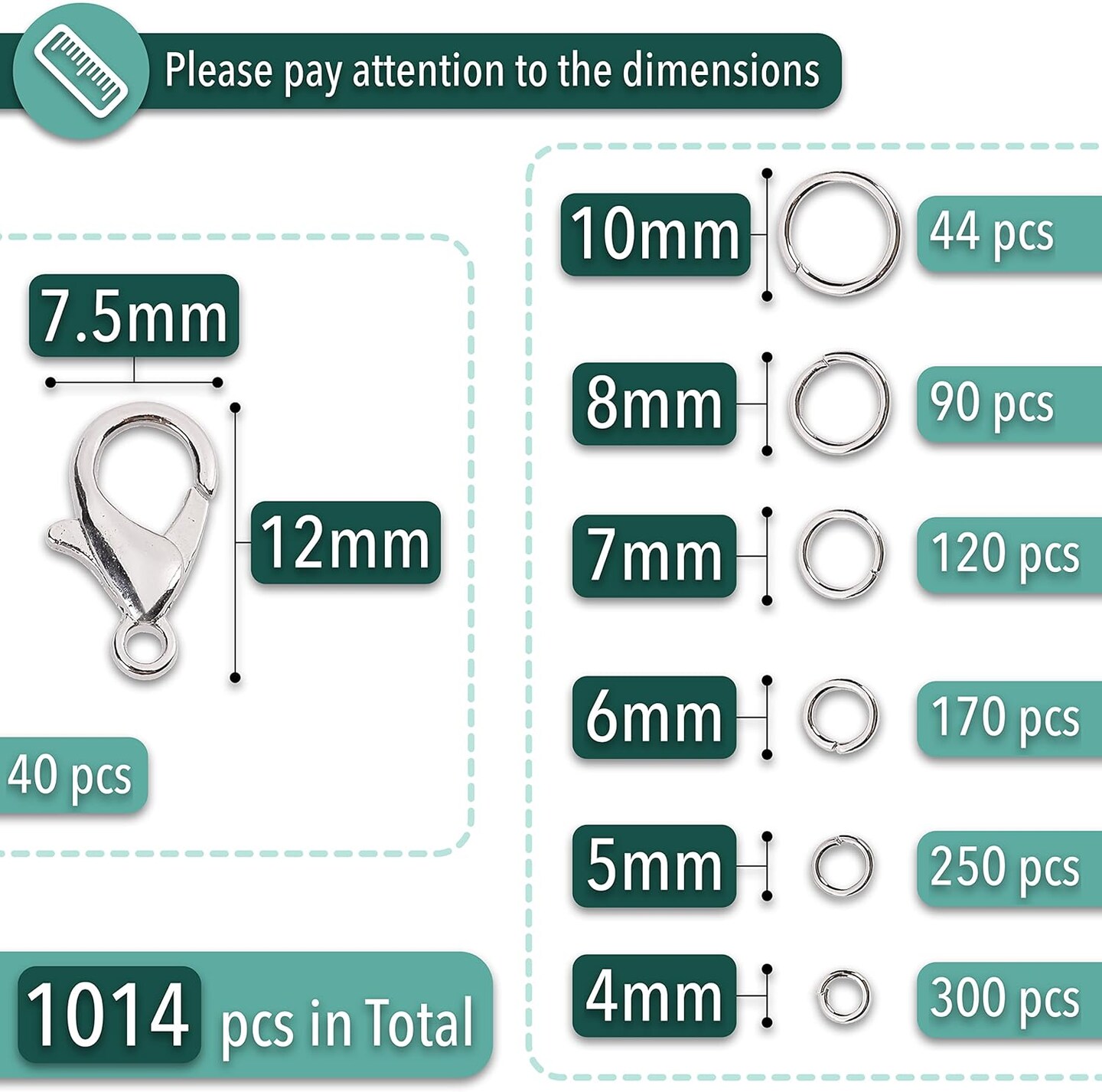 Open Jump Rings, Silver, 1014 pcs, 6 Sizes Open Jump Rings for Jewelry Making, Silver Jump Rings and Lobster Clasps