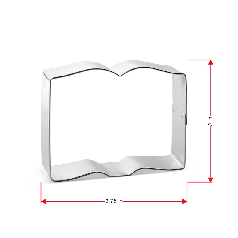 Open School Book Cookie Cutter 3.75 in, CookieCutter.com, Tin Plated Steel, Handmade in the USA