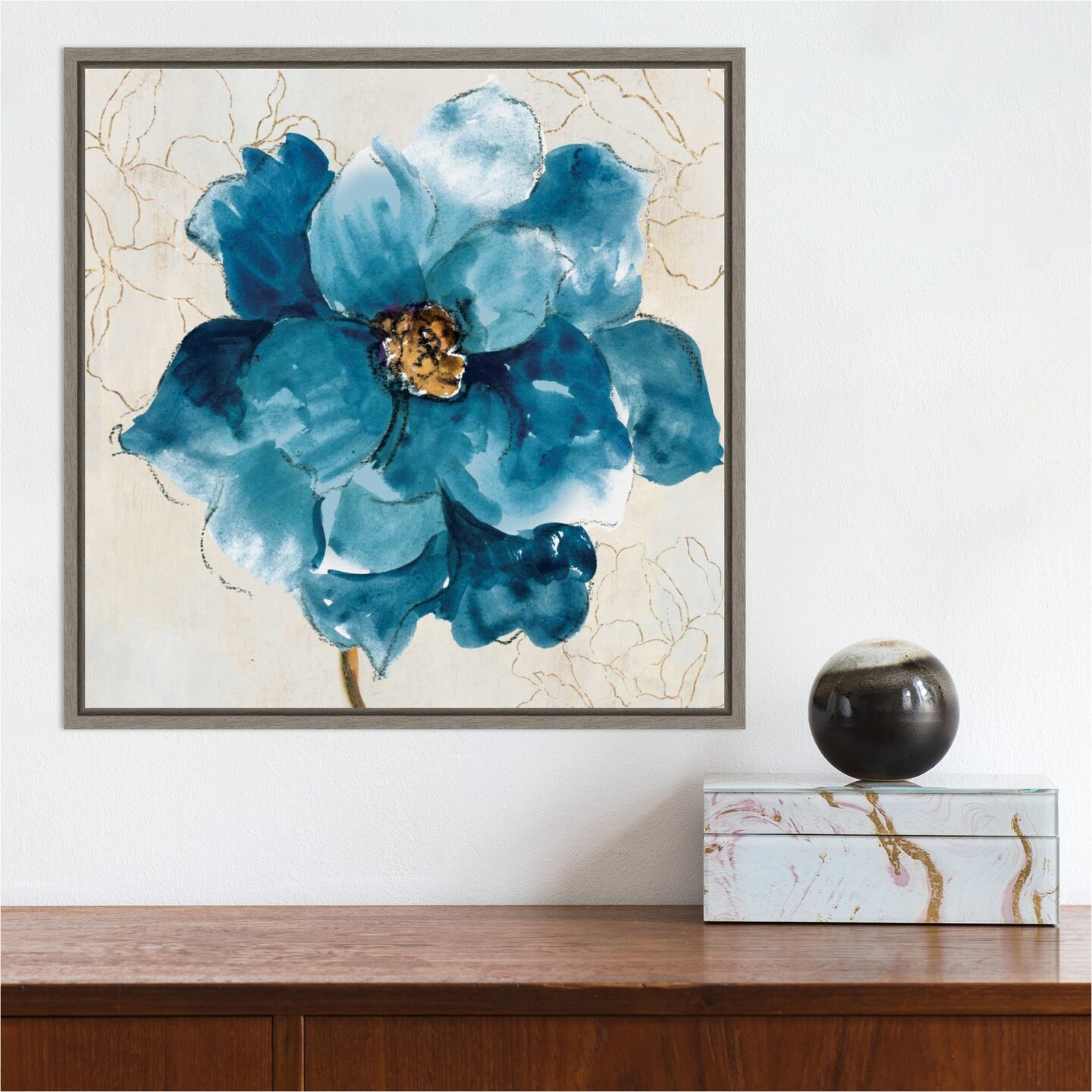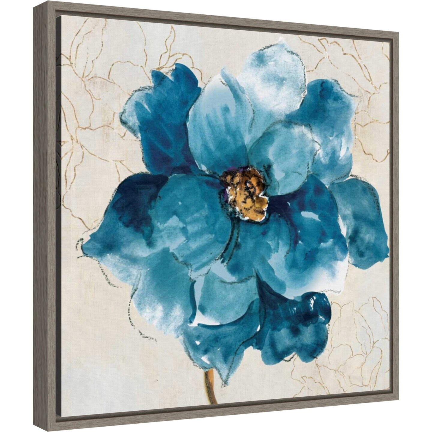 Ophelia I (Blue Flower) by Asia Jensen 16-in. W x 16-in. H. Canvas Wall Art Print Framed in Grey