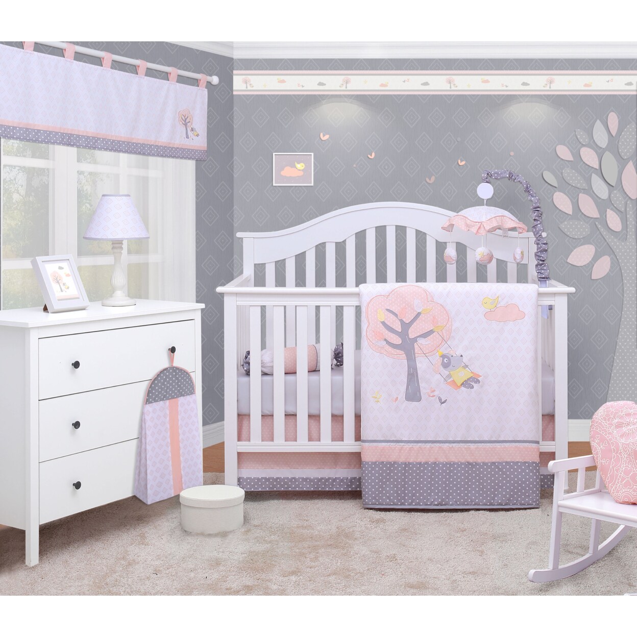 OptimaBaby Bumperless 8PCS Pink Little Puppy Girl Baby Bedding Set Including Mobile and Lamp Shade