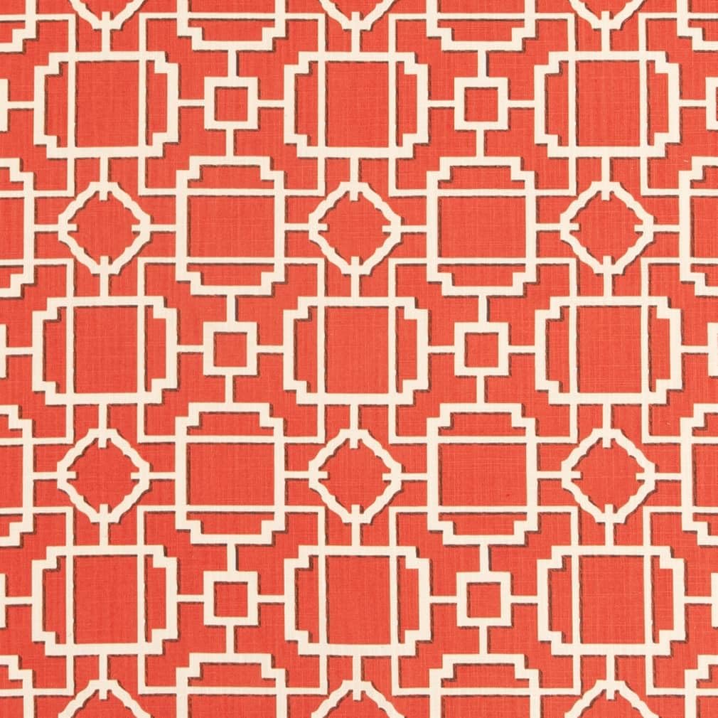 Orange Abstract Geometric Linen Look Print Upholstery Fabric by The Yard - SKU: Wescott Mandarin
