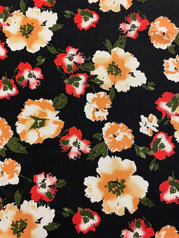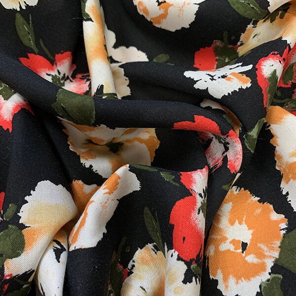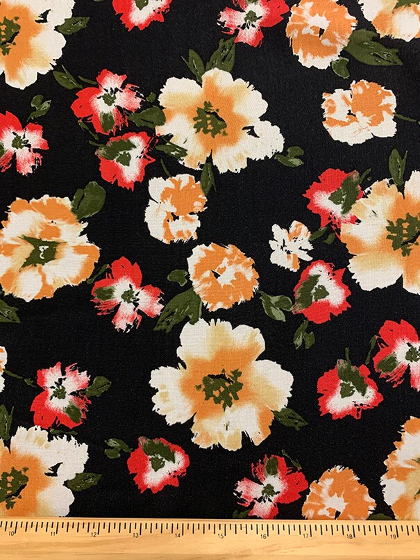 Orange and Red Floral Print Rayon Challis Fabric By the Yard