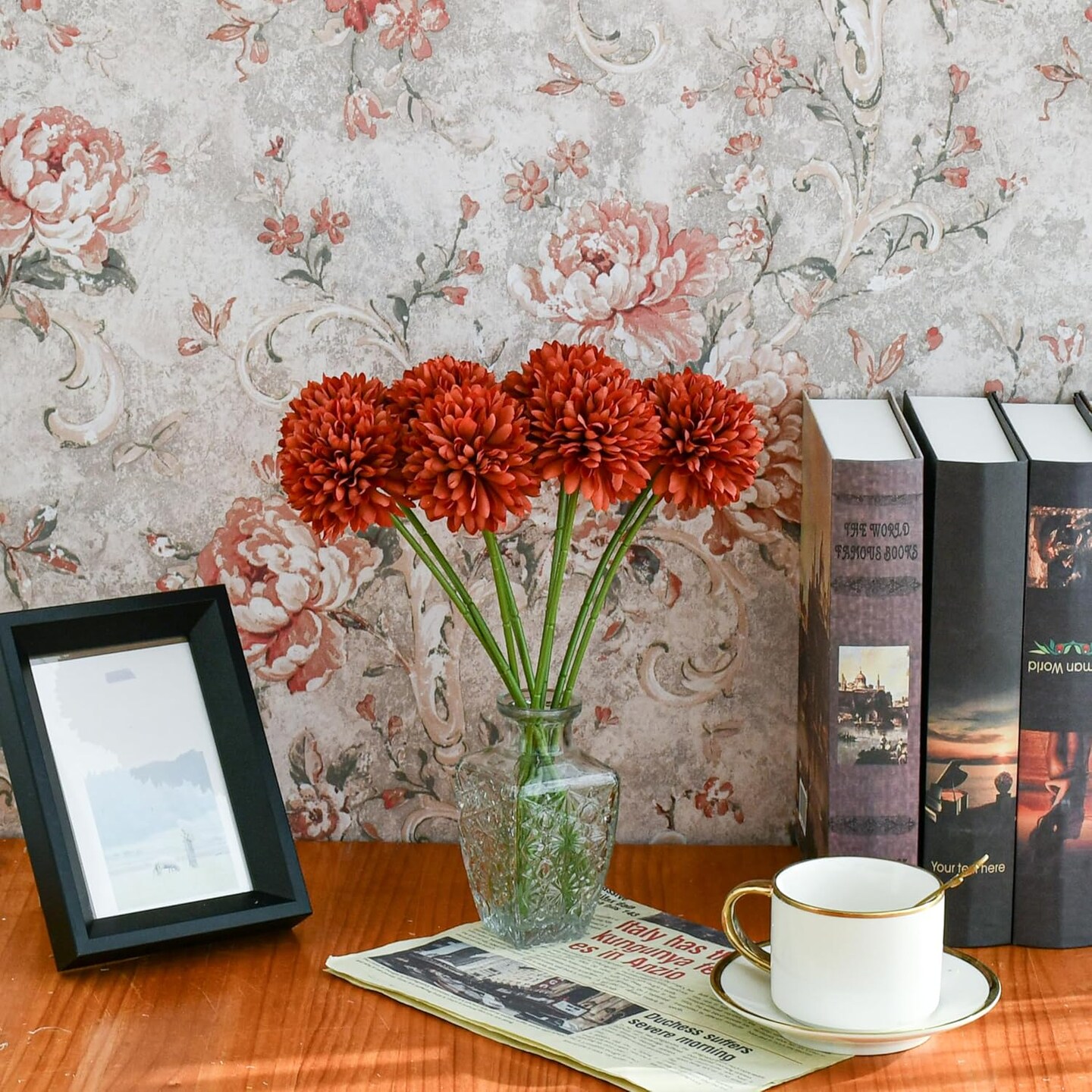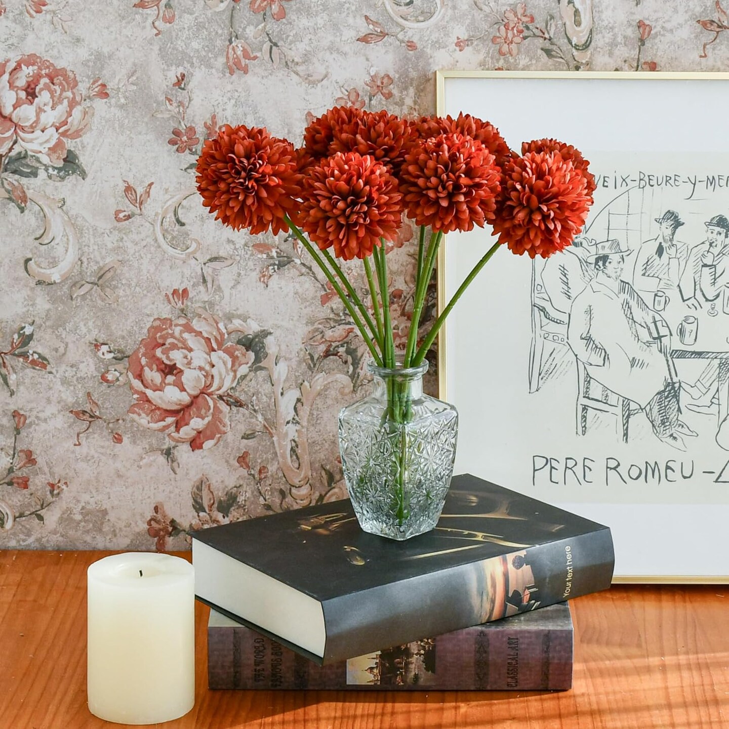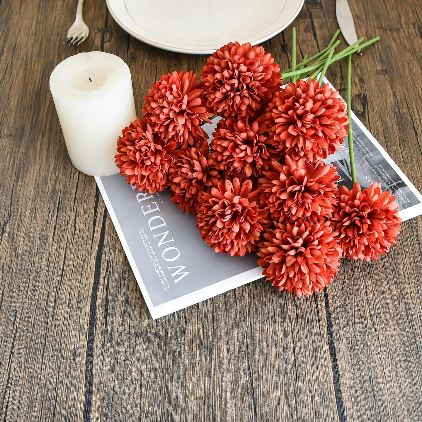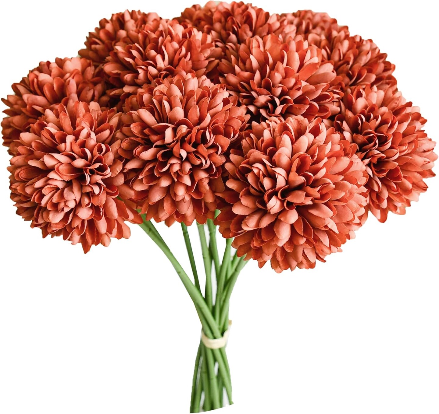 Orange Artificial Ball Chrysanthemum 12 Stems Faux Flowers