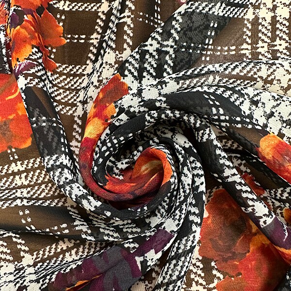Orange Floral Print Poly Chiffon Fabric By the Yard