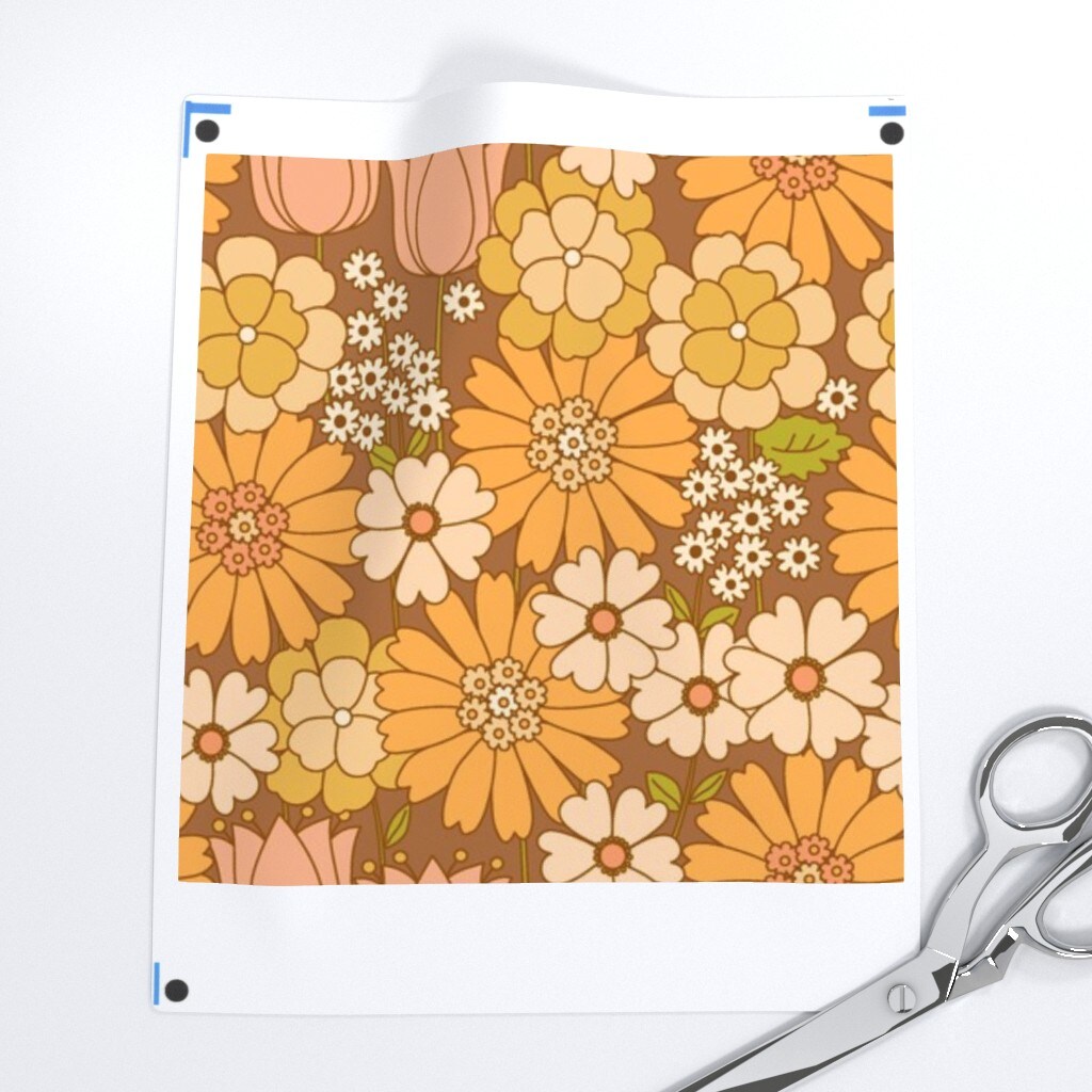 Orange Floral Retro Flower Vintage Nostalgia Mustard Seventies Custom Printed Fabric by Spoonflower Various Fabrics by the Yard or Fat Quarter