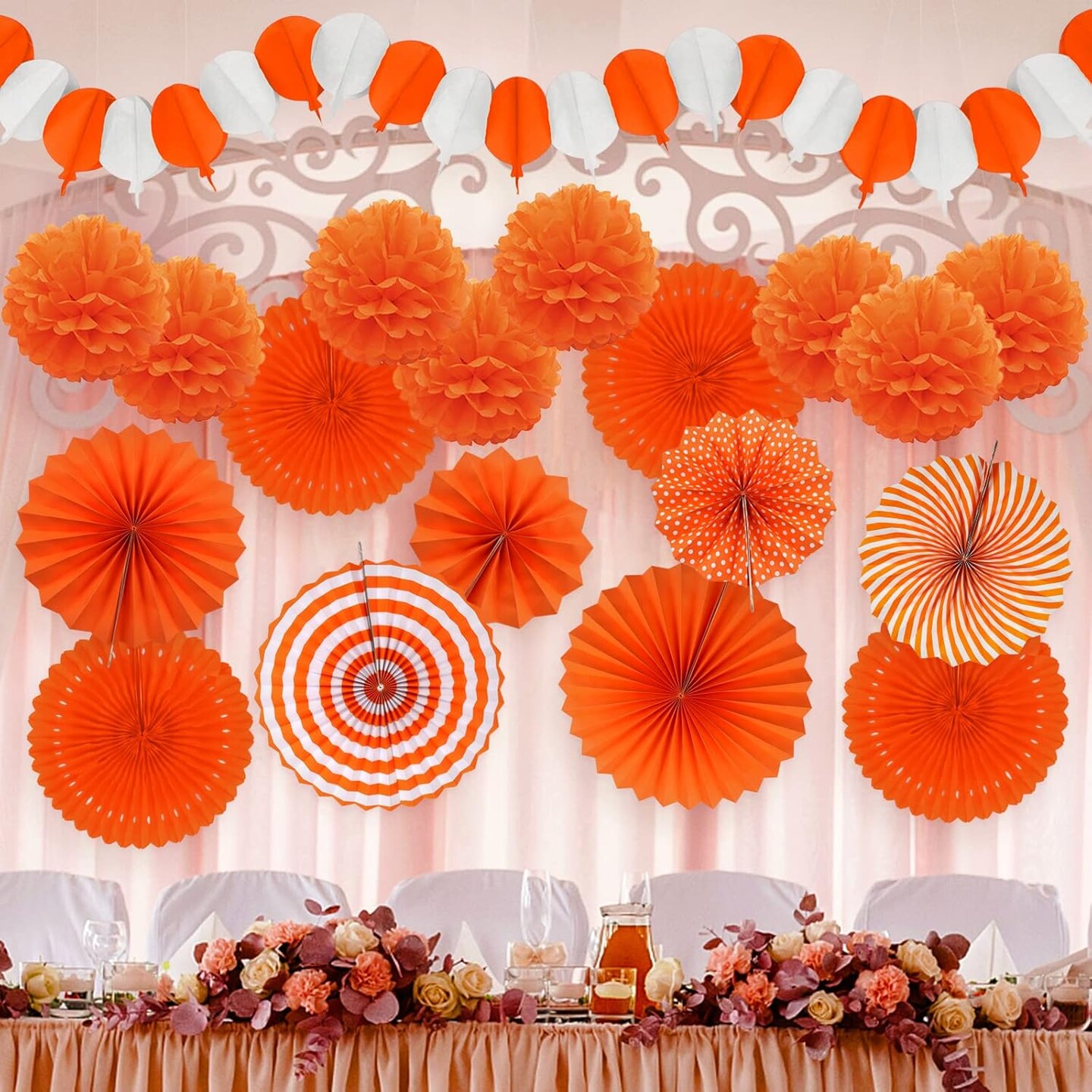 Orange Party Decorations, Papar Fans Pompoms Fans Garlands for Halloween Birthday Bridal Baby Shower Wedding Graduation Spring Festival Party Decorations