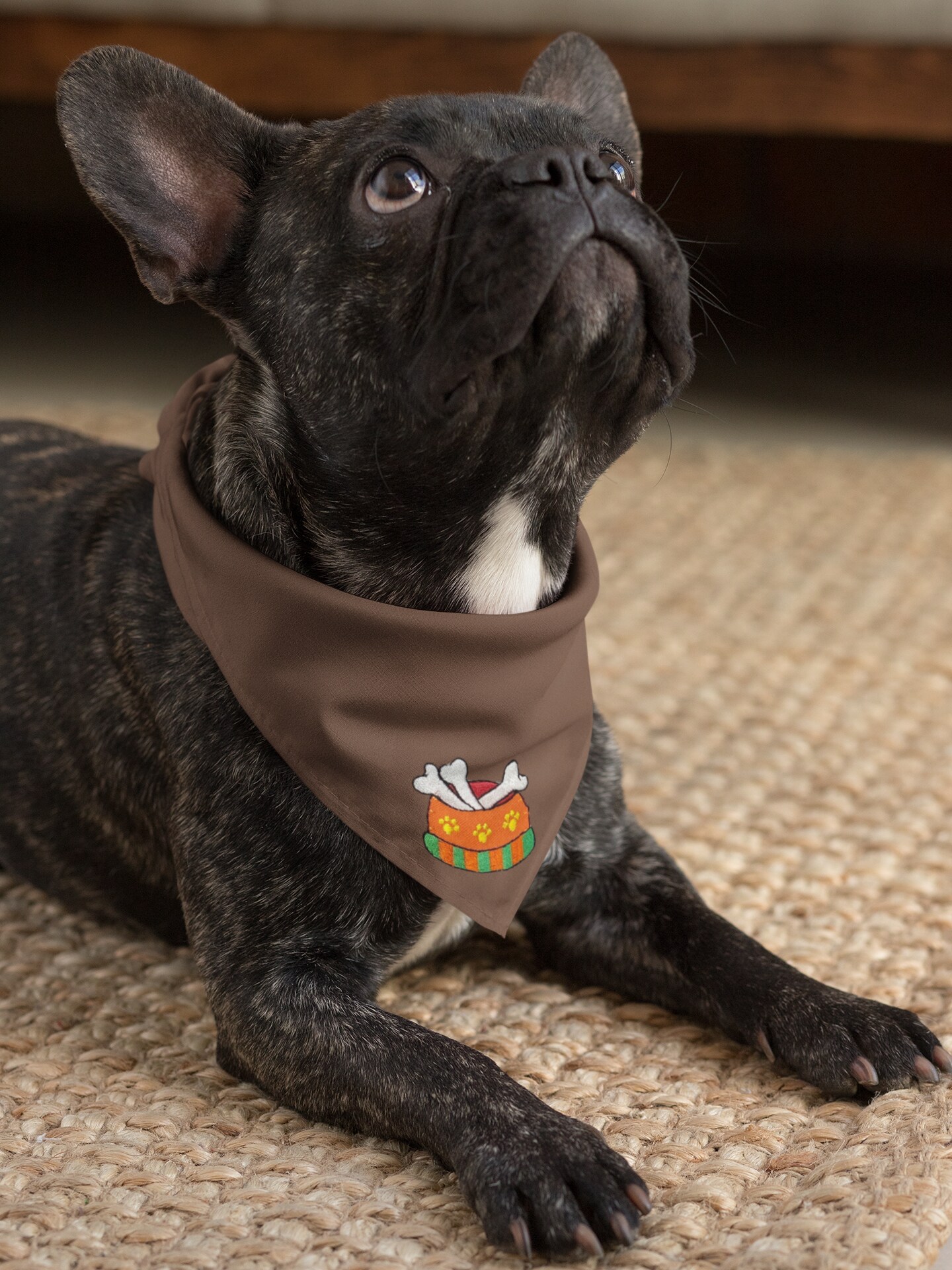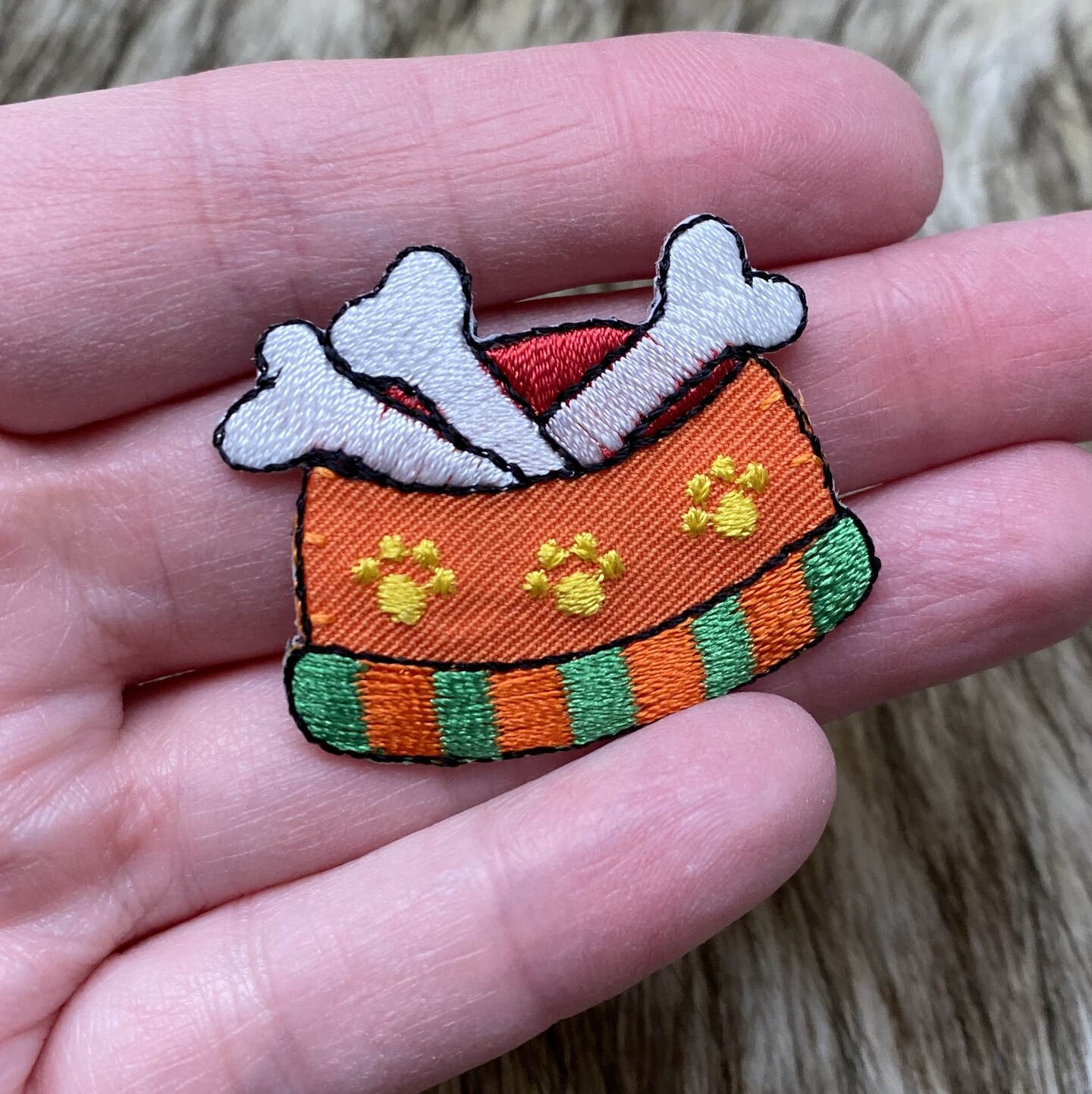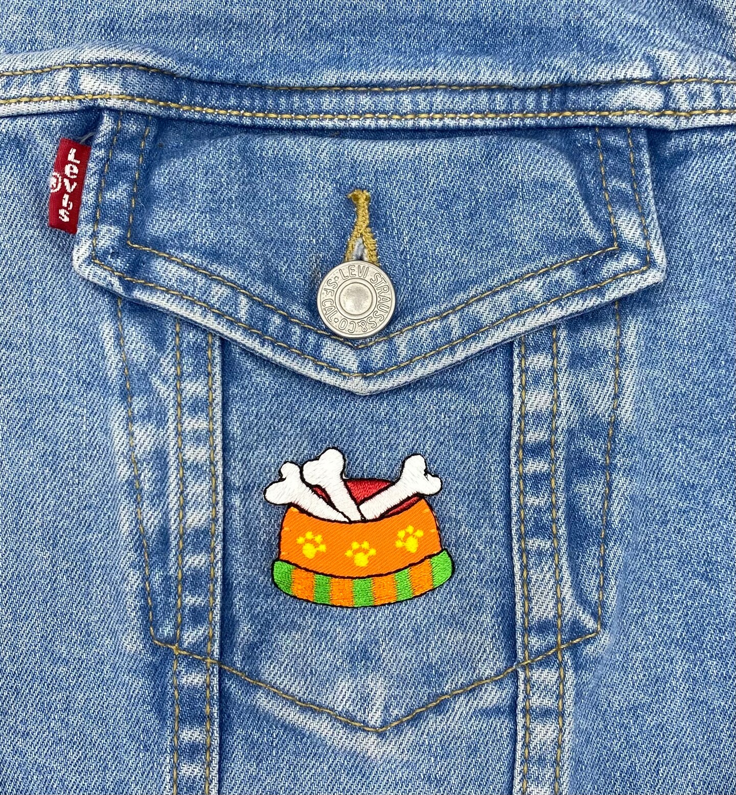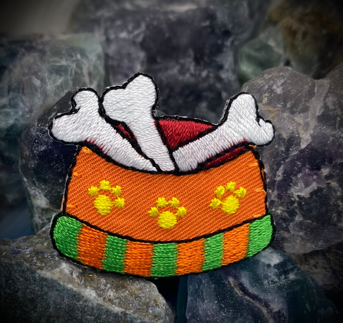 Orange Pet Food Bowl, White Bones, Dog, Embroidered, Iron on Patch