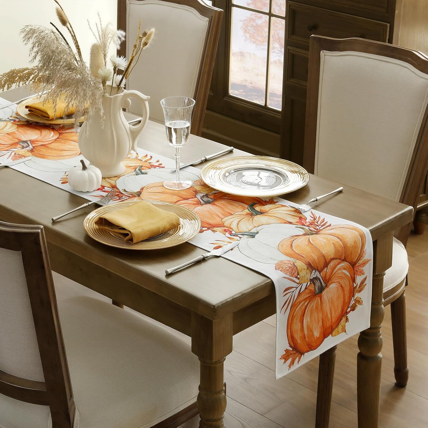 Orange Pumpkin Leaves Table Runner (Pumpkinorange) 13 x 72"
