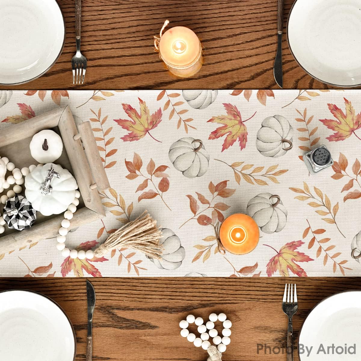 Orange Pumpkins Fall Maple Leaves Fall Table Runner,13x72 Inch