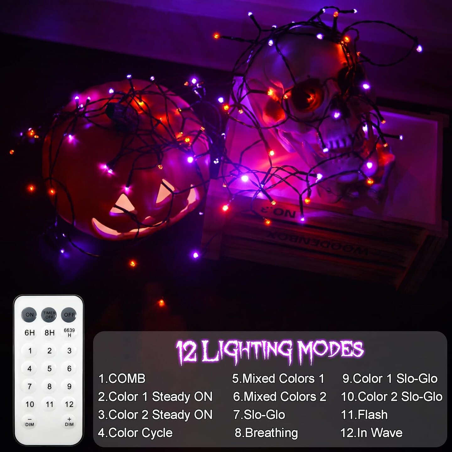 Orange Purple Halloween 33ft 100 LED String Lights Battery Operated (Warm White & Purple Orange)