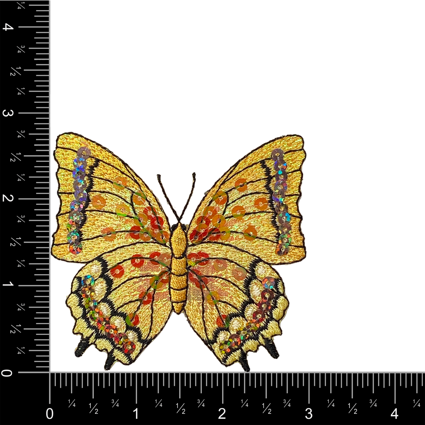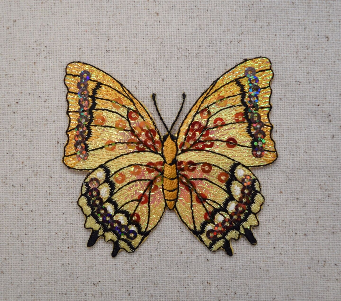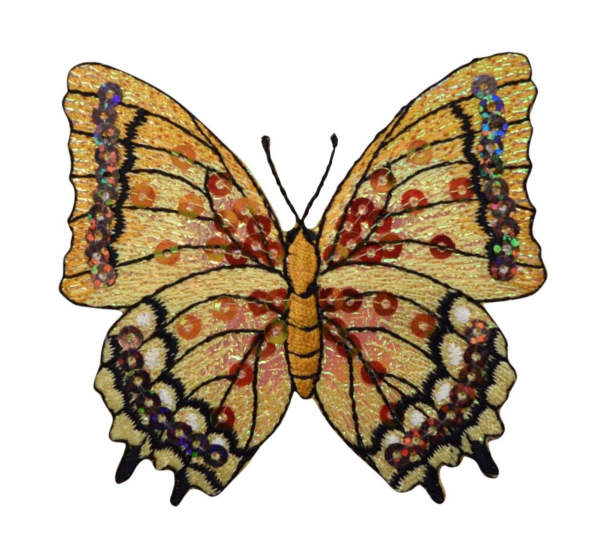 Orange Sequin Butterfly, Embroidered, Iron on Patch