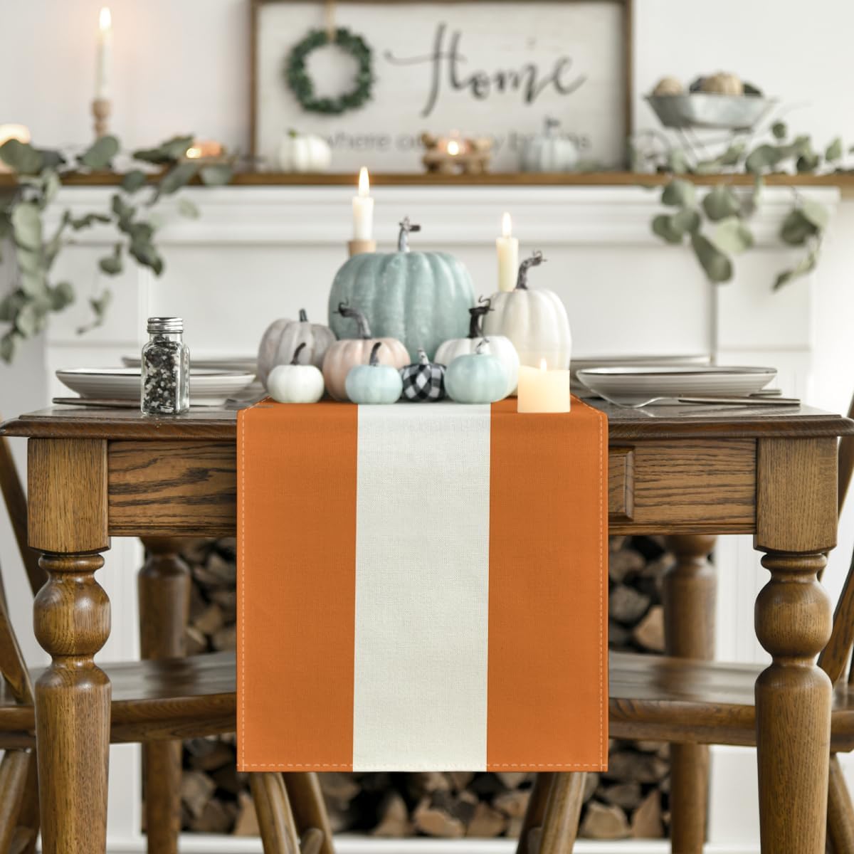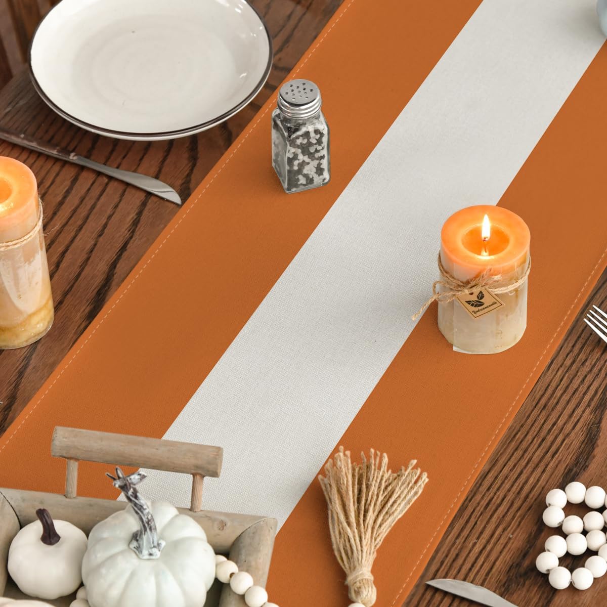 Orange White Stripes Fall Table Runner (Orange/White/Orange) 13x72 Inch