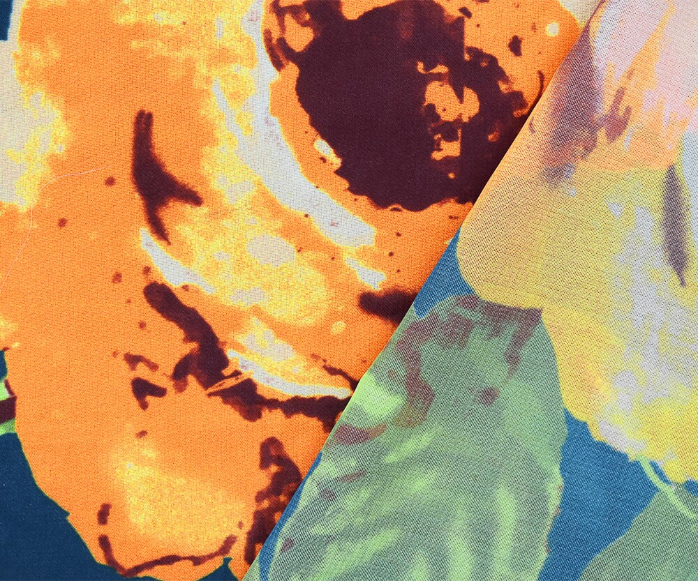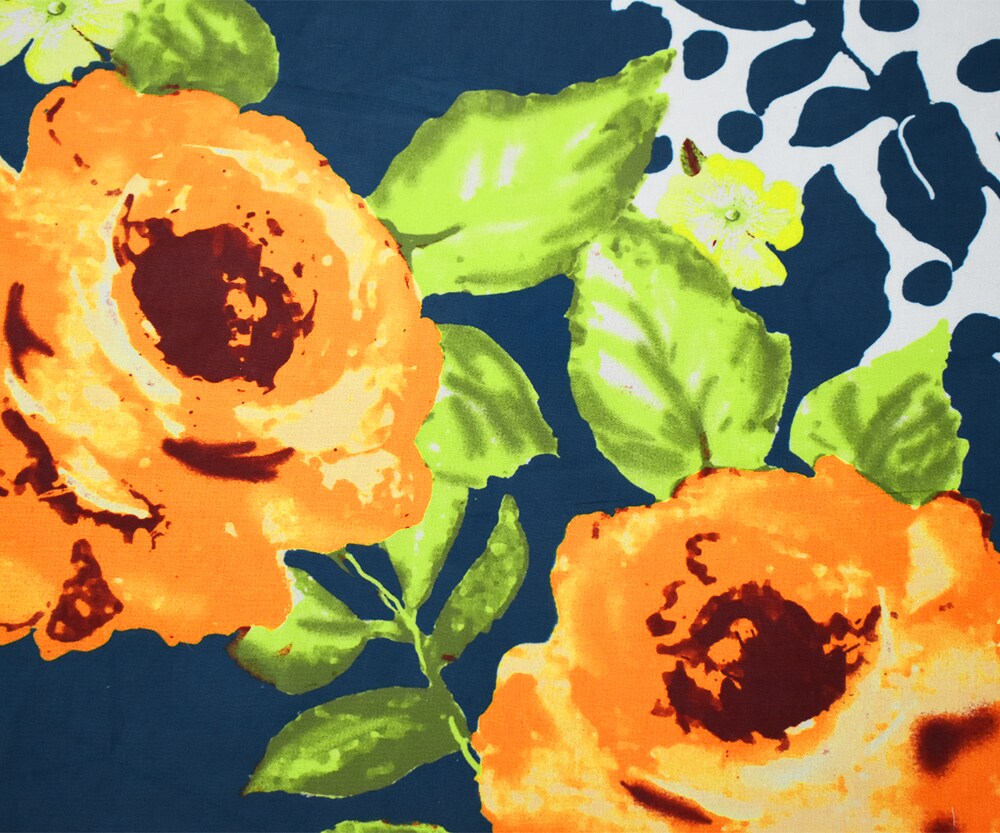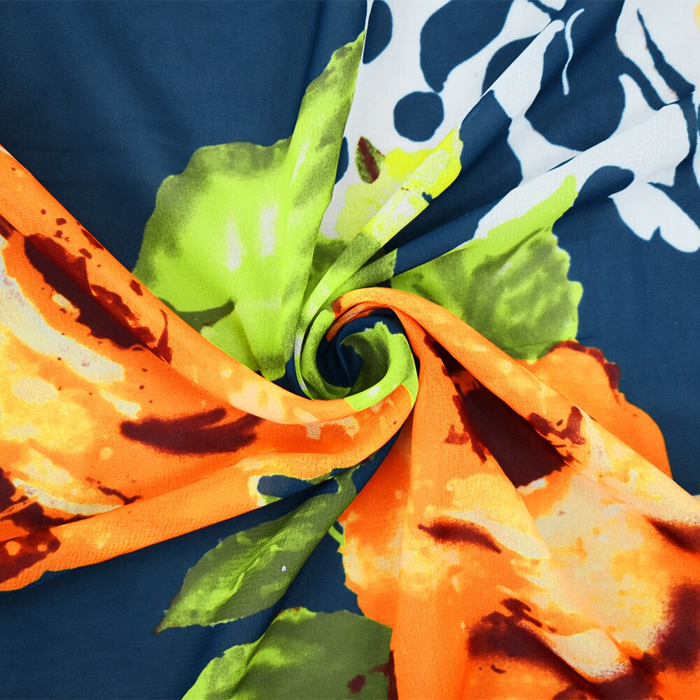 Orange-Blue-Multi Floral Dots Printed Poly Chiffon Woven Fabric By the Yard