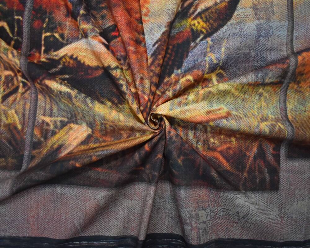 Orange-Brown-Multi Cotton Peasant Printed Wall Hanging Panel Woven Fabric