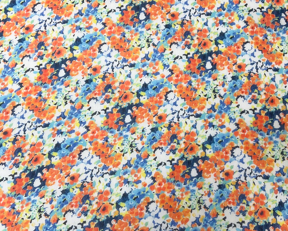 Orange-Multi Poly Floral Print Crinkle Yoryu Chiffon Woven Fabric By the Yard