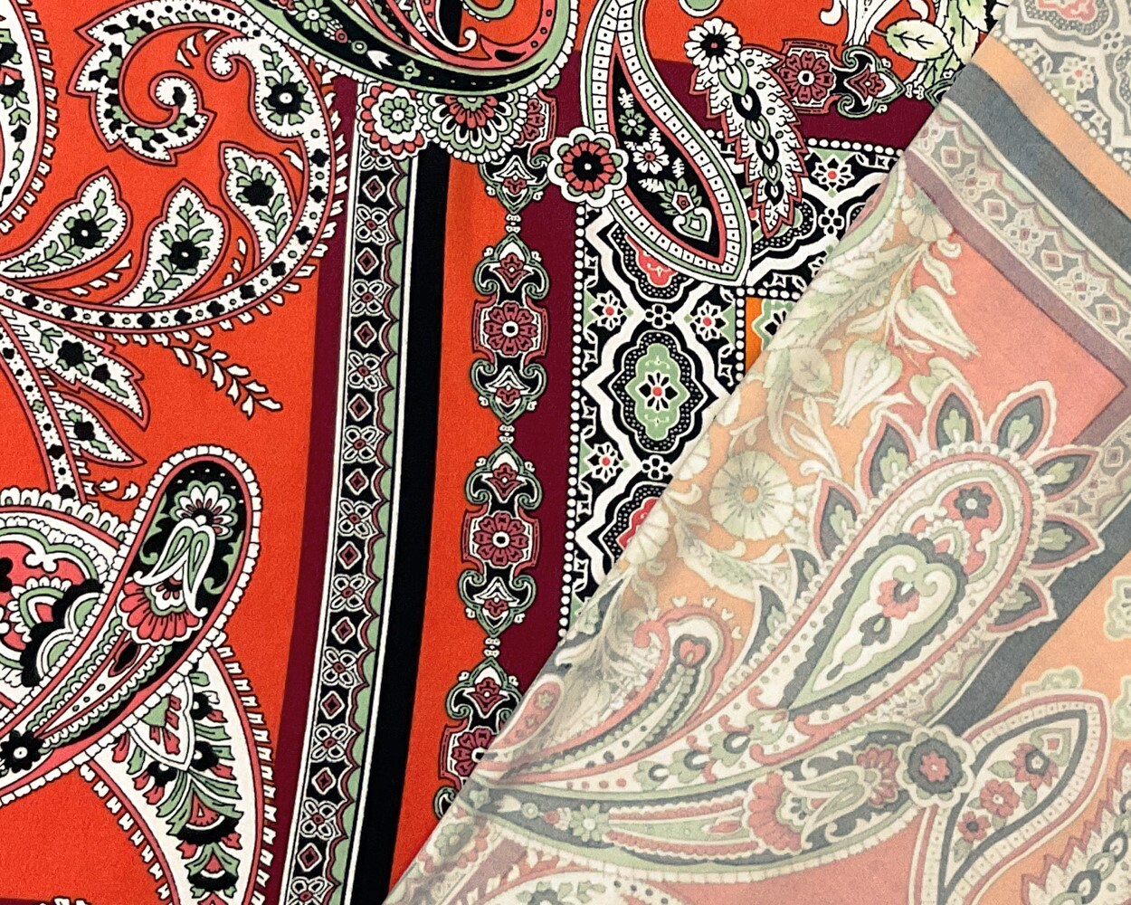 Orange-Multi Poly Spandex Stretch Paisley Print Double Brush Jersey Knit Fabric By the Yard