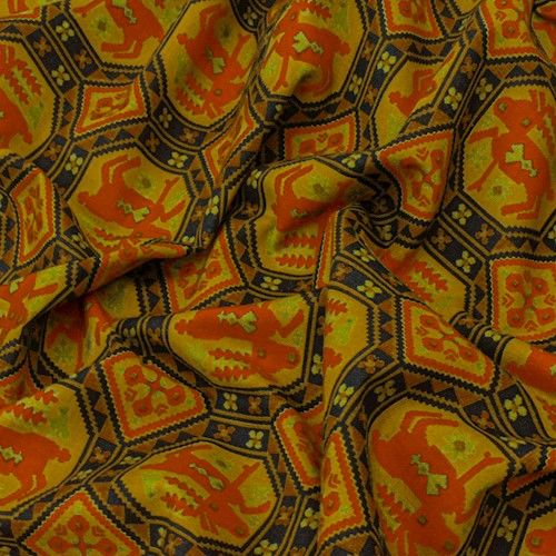 Orange/Multi Vintage 1950s Reindeer Print Shirting Fabric By the Yard