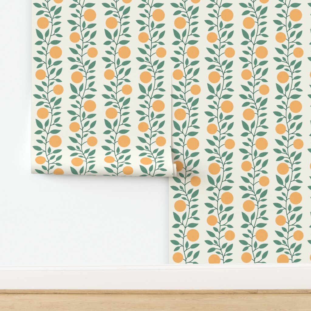 Oranges Vines Vertical Stripes Climbing Fuit Kitchen Custom Pre-pasted Wallpaper by Spoonflower Pre-Pasted Wallpaper 2FT Wide