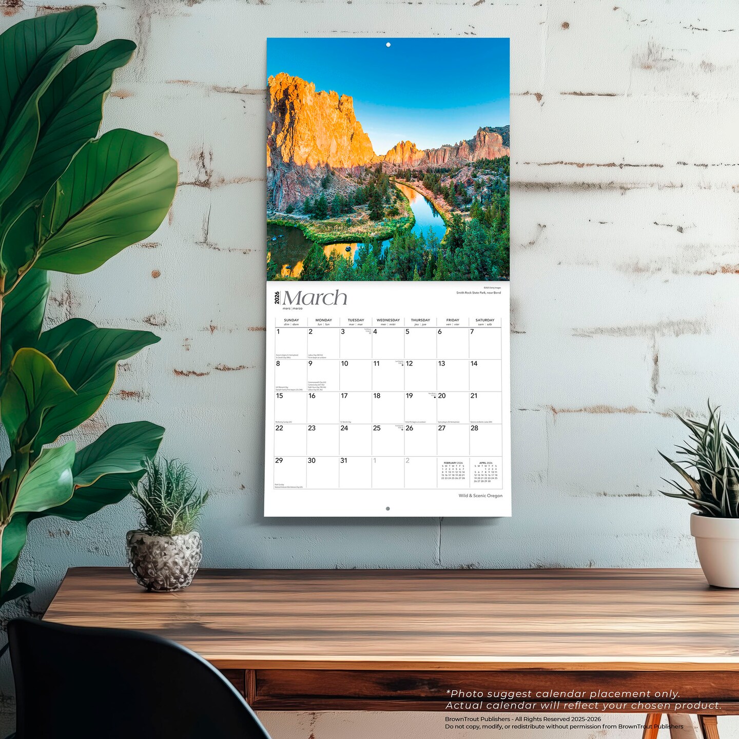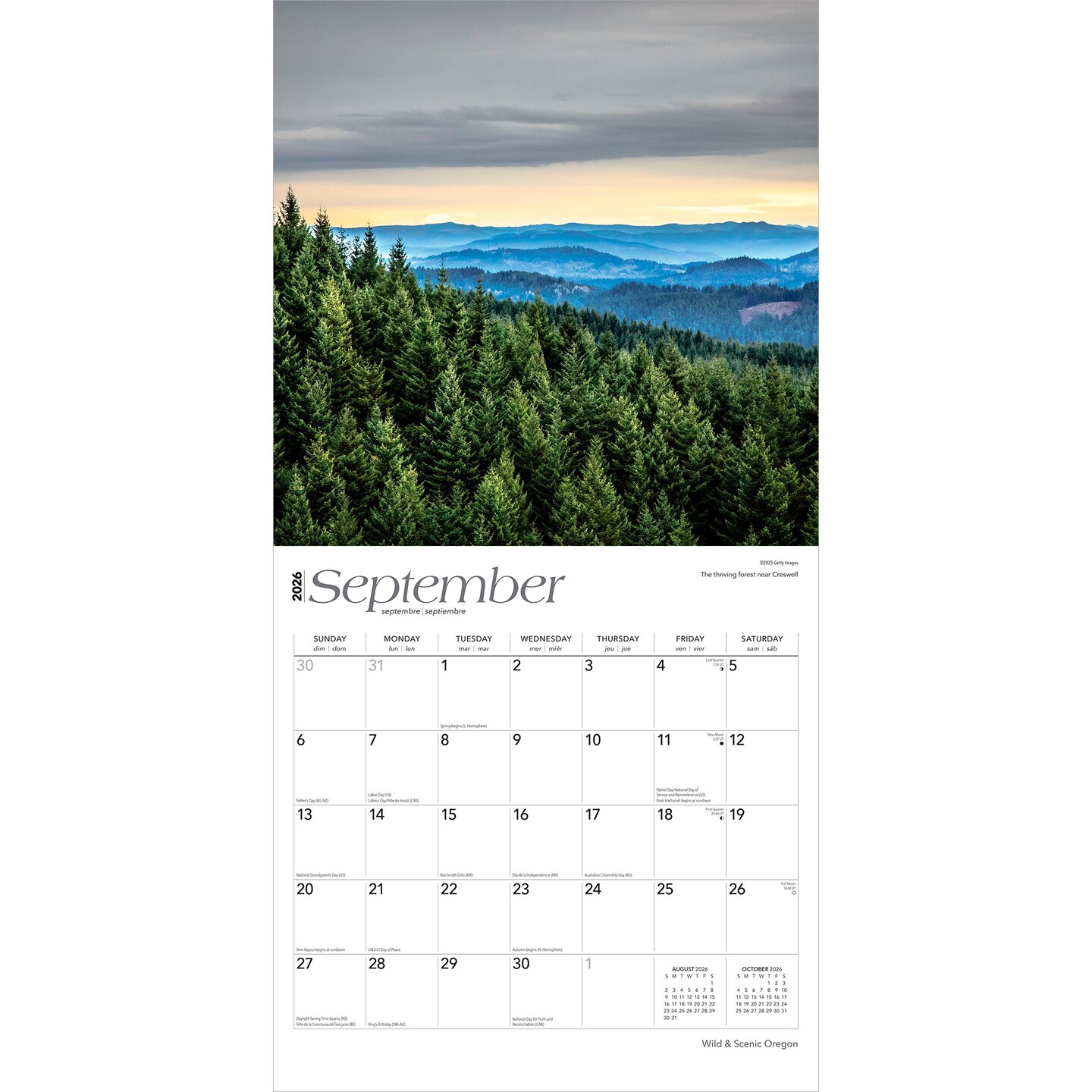 Oregon Wild & Scenic | 2026 12 x 24 Inch (Hanging) Monthly Square Wall Calendar | Plastic-Free