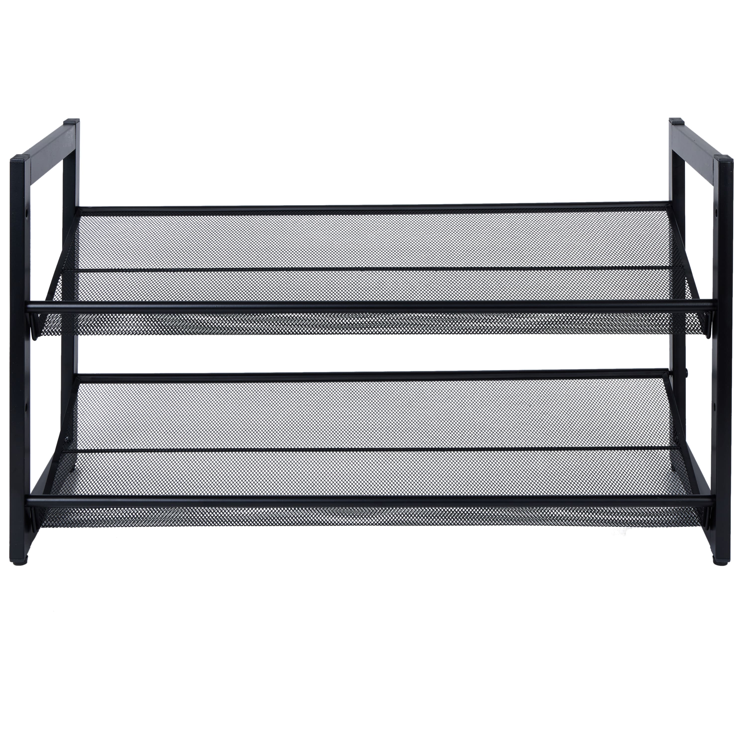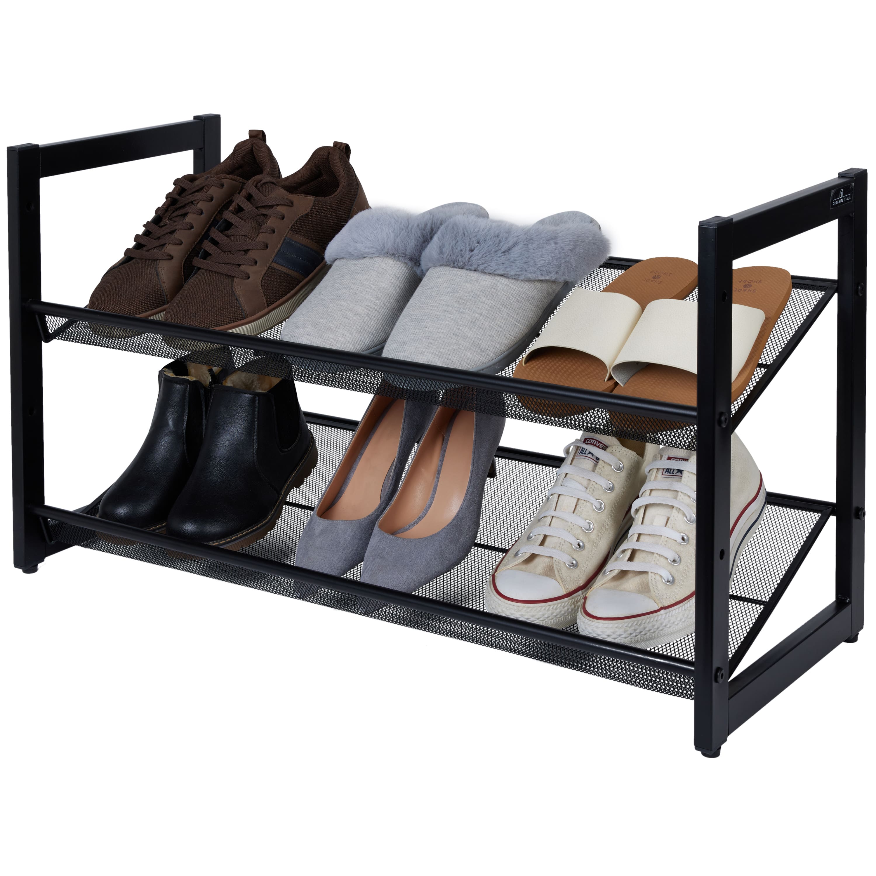 Organize It All 30" Black 2 Tier Adjustable Mesh Shoe Rack