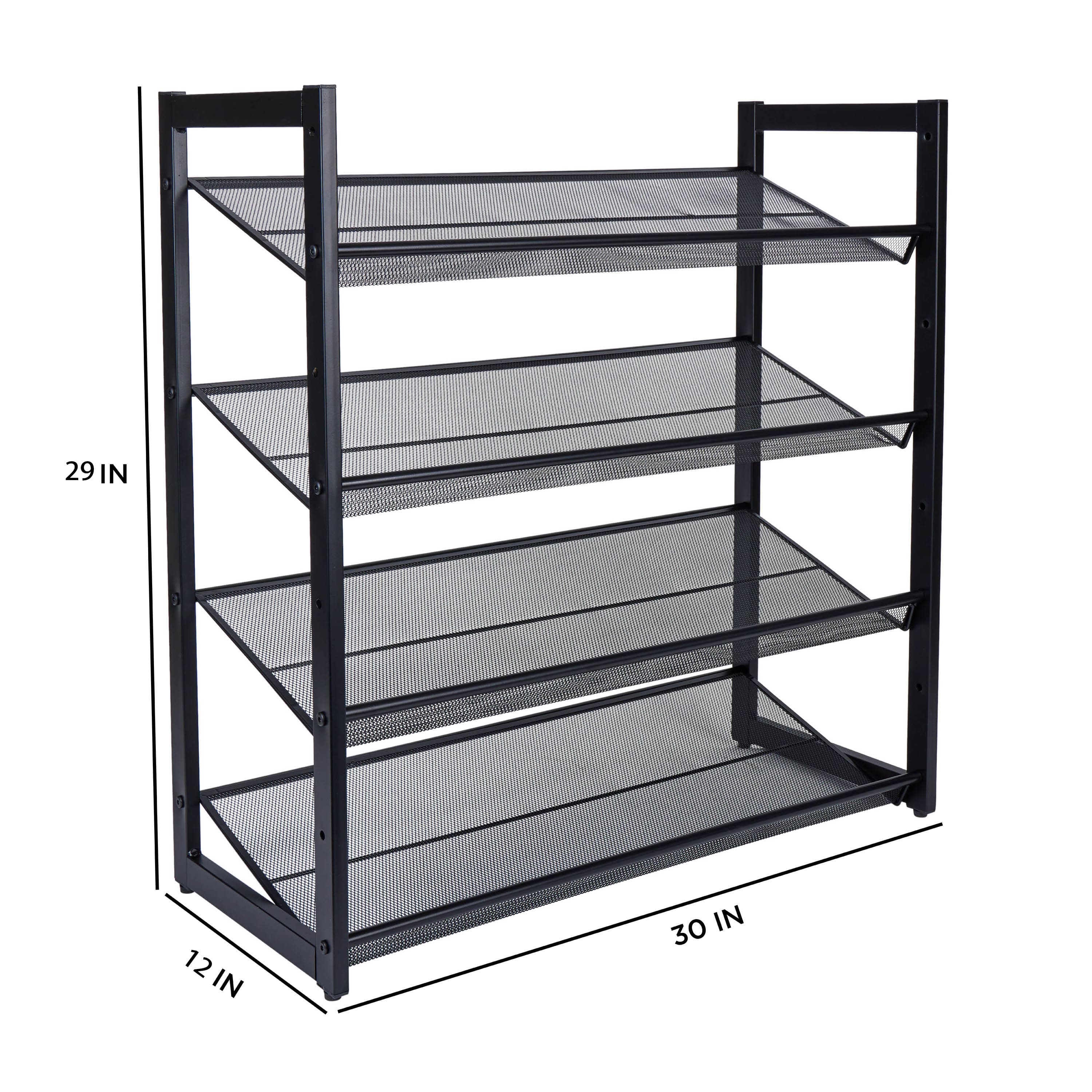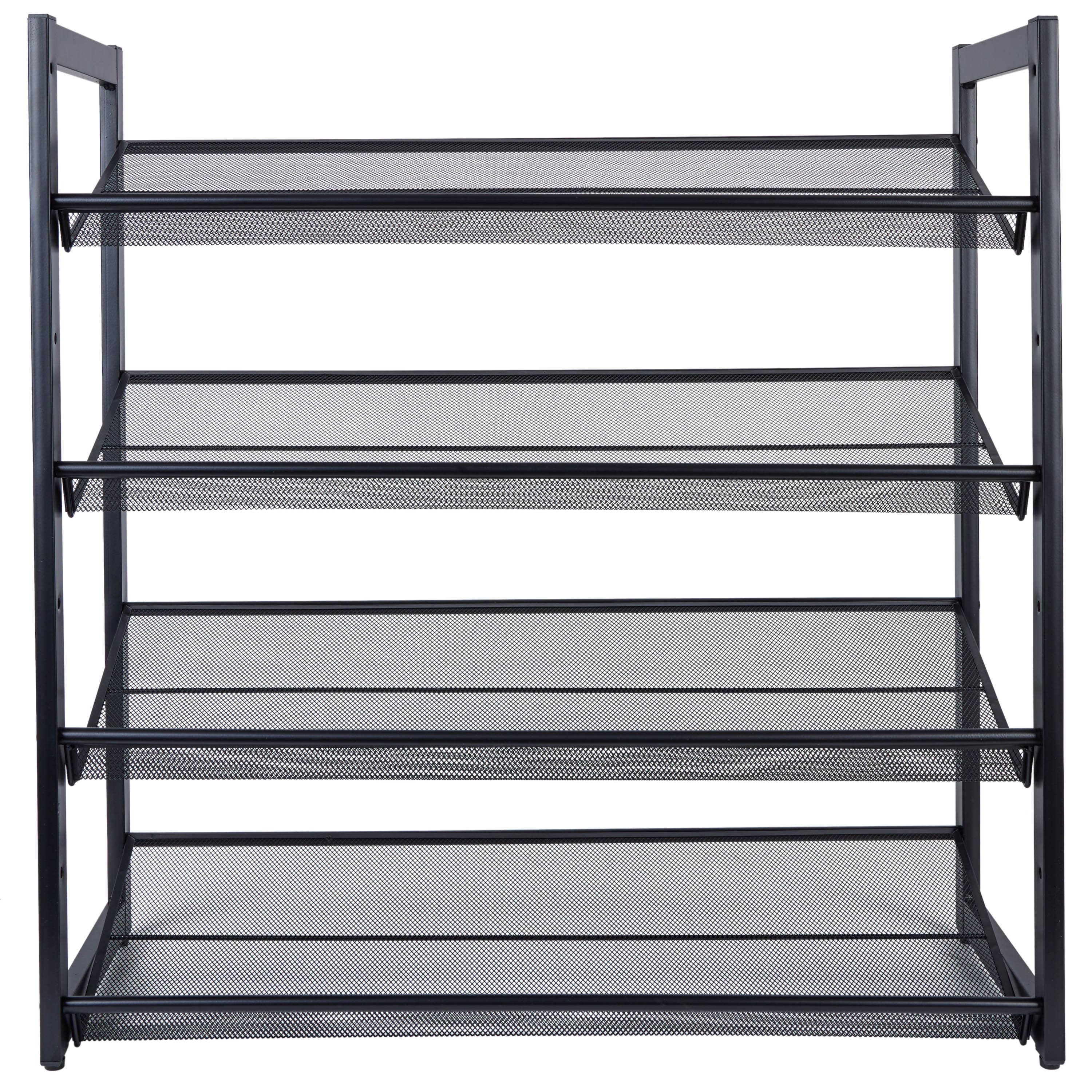 Organize It All Black 30" Wide 4 Tier Adjustable Mesh Shoe Rack