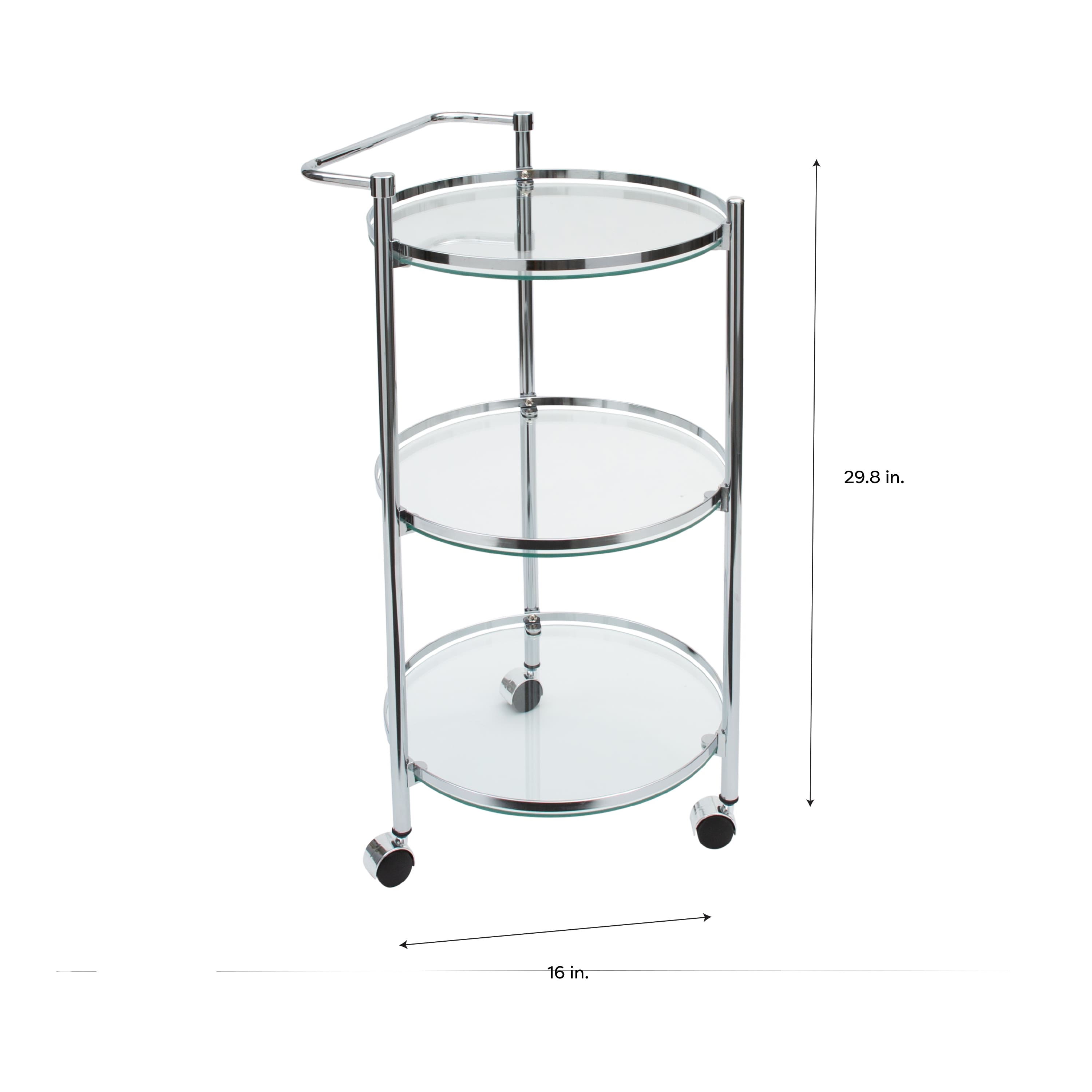 Organize It All Chrome 3-Tier Circular Tempered Glass Rolling Serving Cart