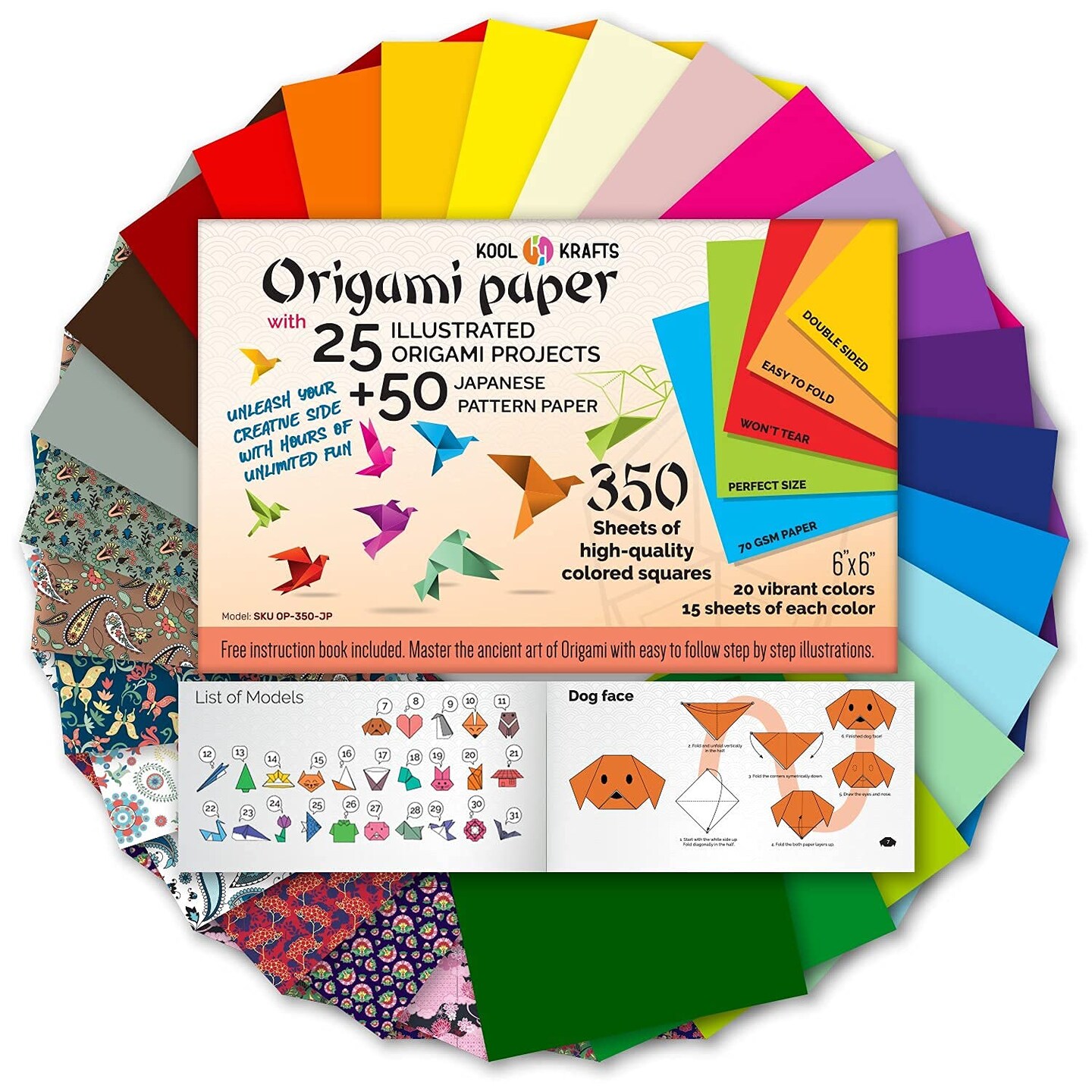 Origami Paper | 350 Origami Paper Kit | Set Includes - 300 Sheets 20 Colors 6x6 | 50 Traditional Japanese Patterns | Origami Book 25 Easy Colored Projects | Kids Crafts | Christmas Gifts for boys 8-12