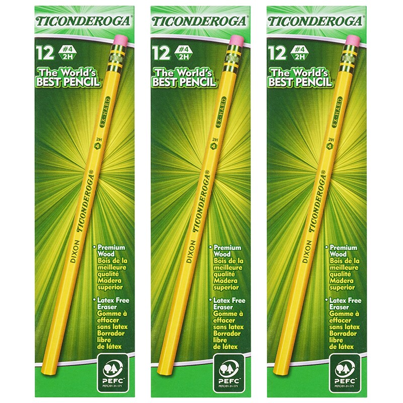 Original Ticonderoga® Pencils, No. 4 Extra Hard Yellow, Unsharpened, 12 Per Box, 3 Boxes