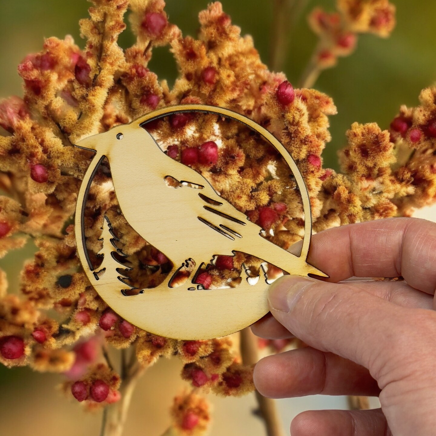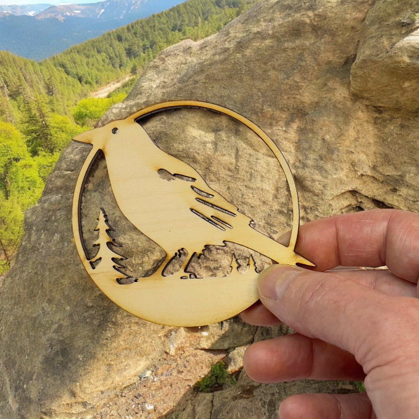 Ornament - Crow Raven Raw wood