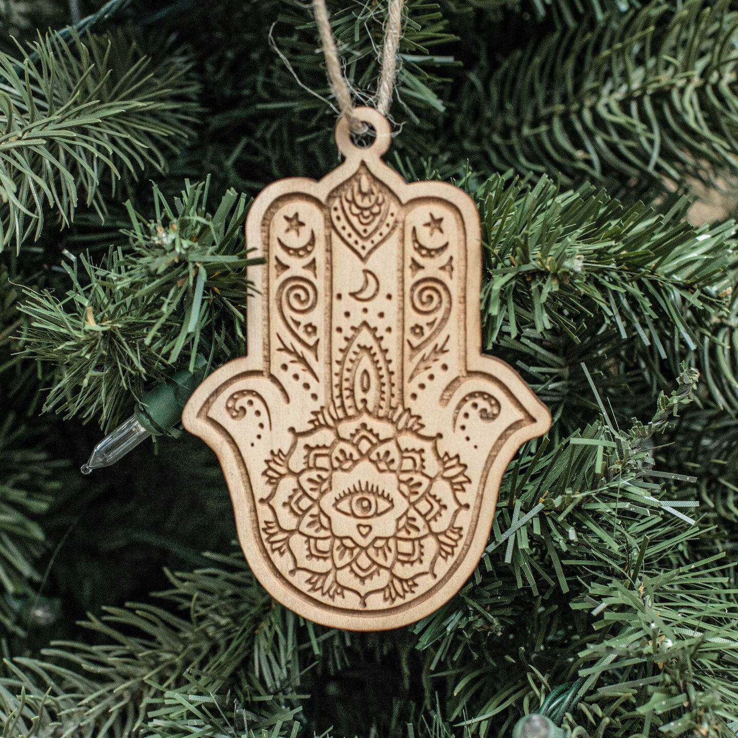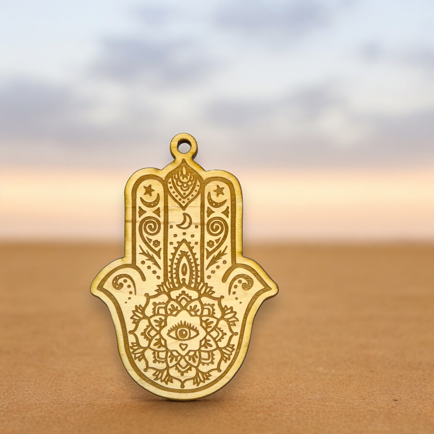 Ornament - Hamsa Hand - Raw Wood 4x3in
