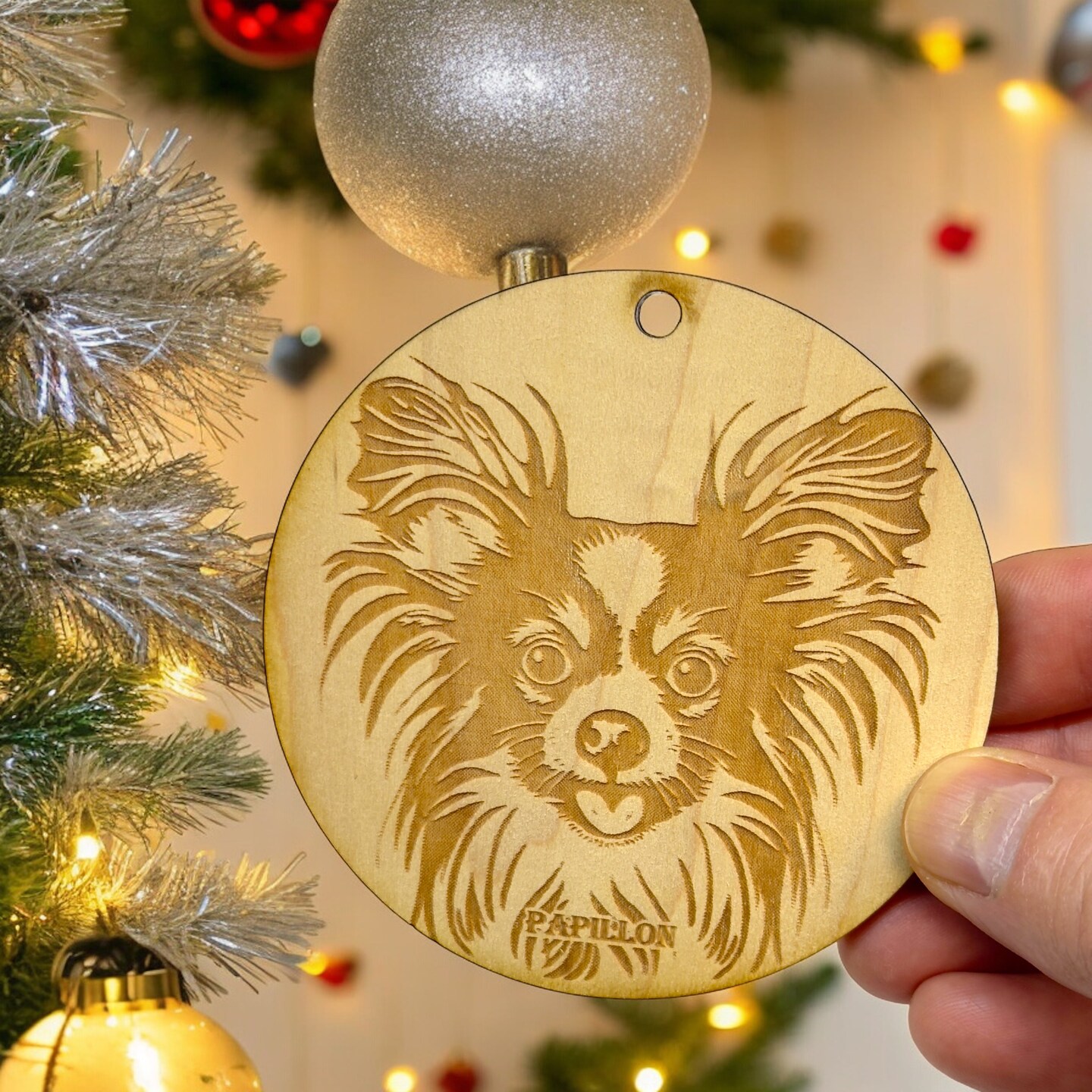 Ornament - Papillon Dog Raw Wood