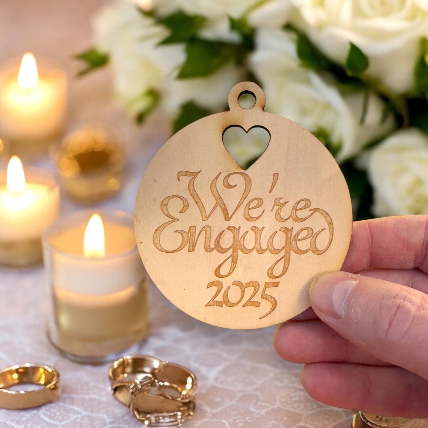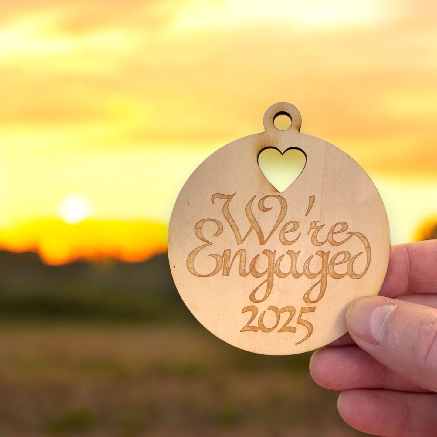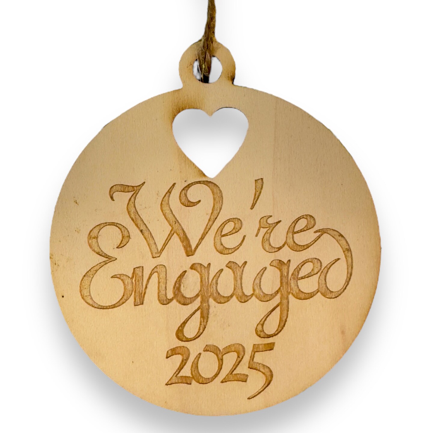 Ornament - We're Engaged 2025 - Raw Wood 3x3in
