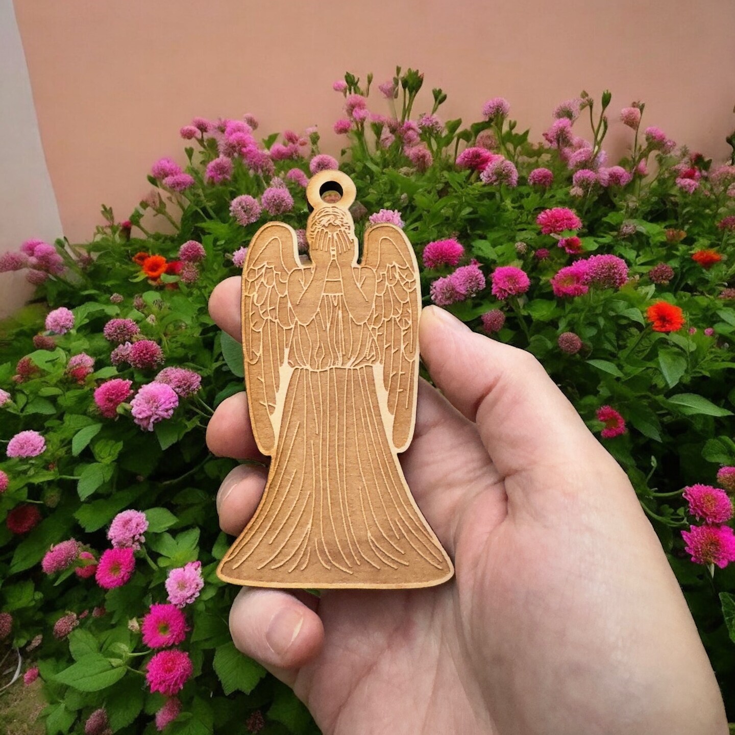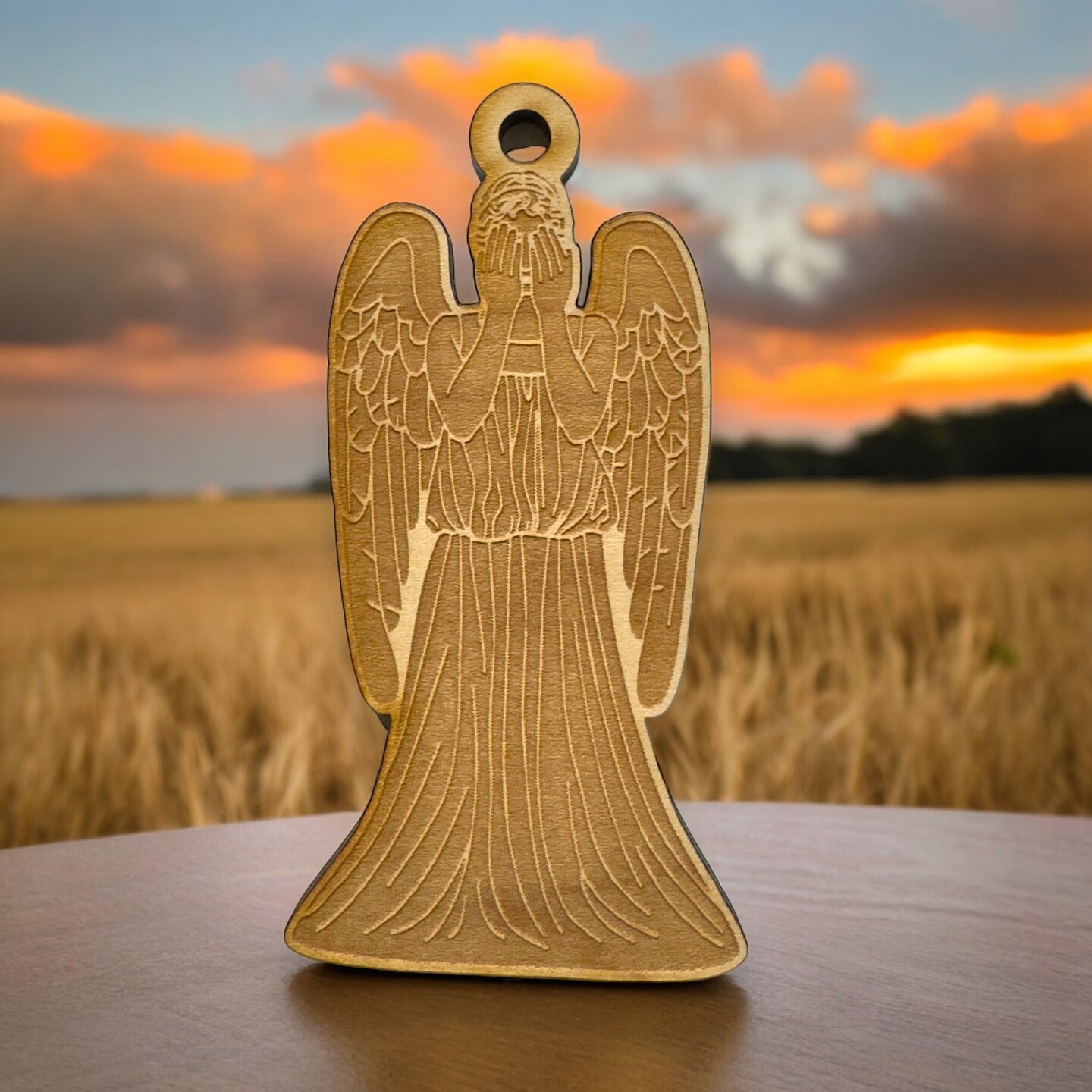 Ornament - Weeping Angel - Raw Wood 4x2in