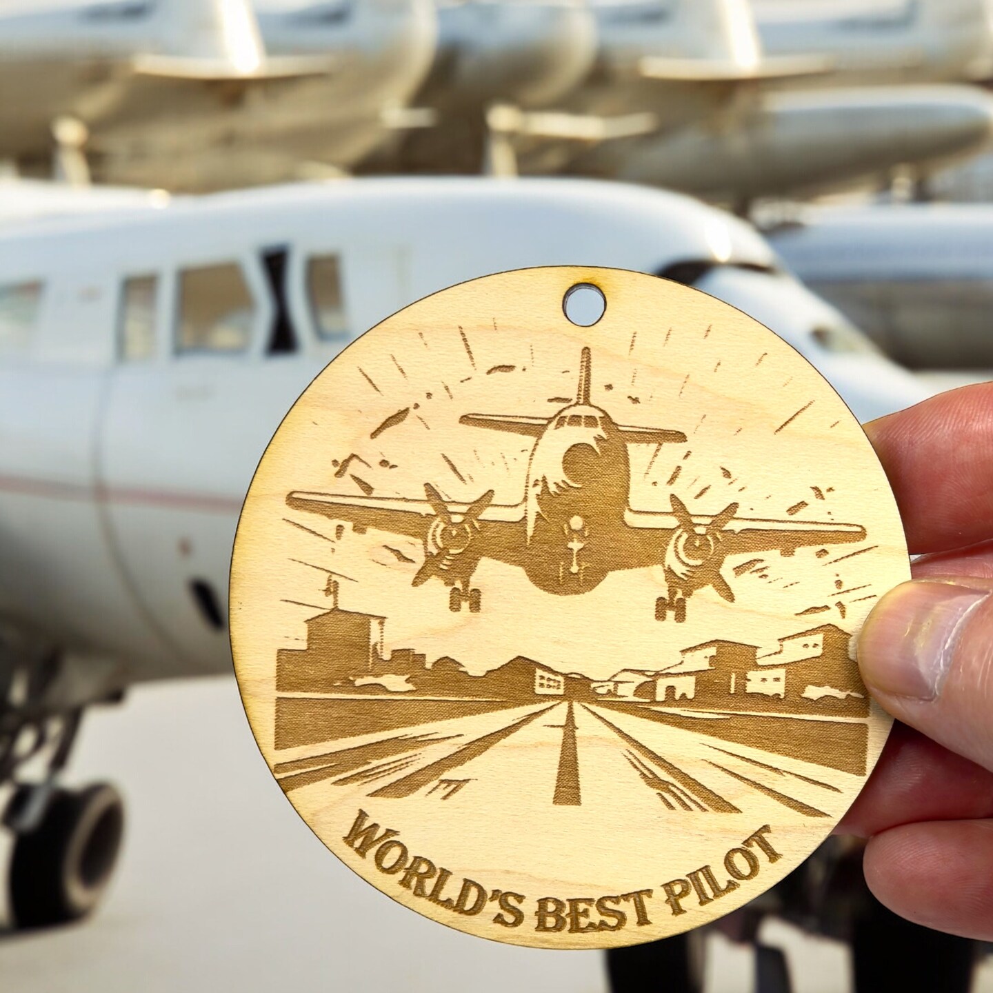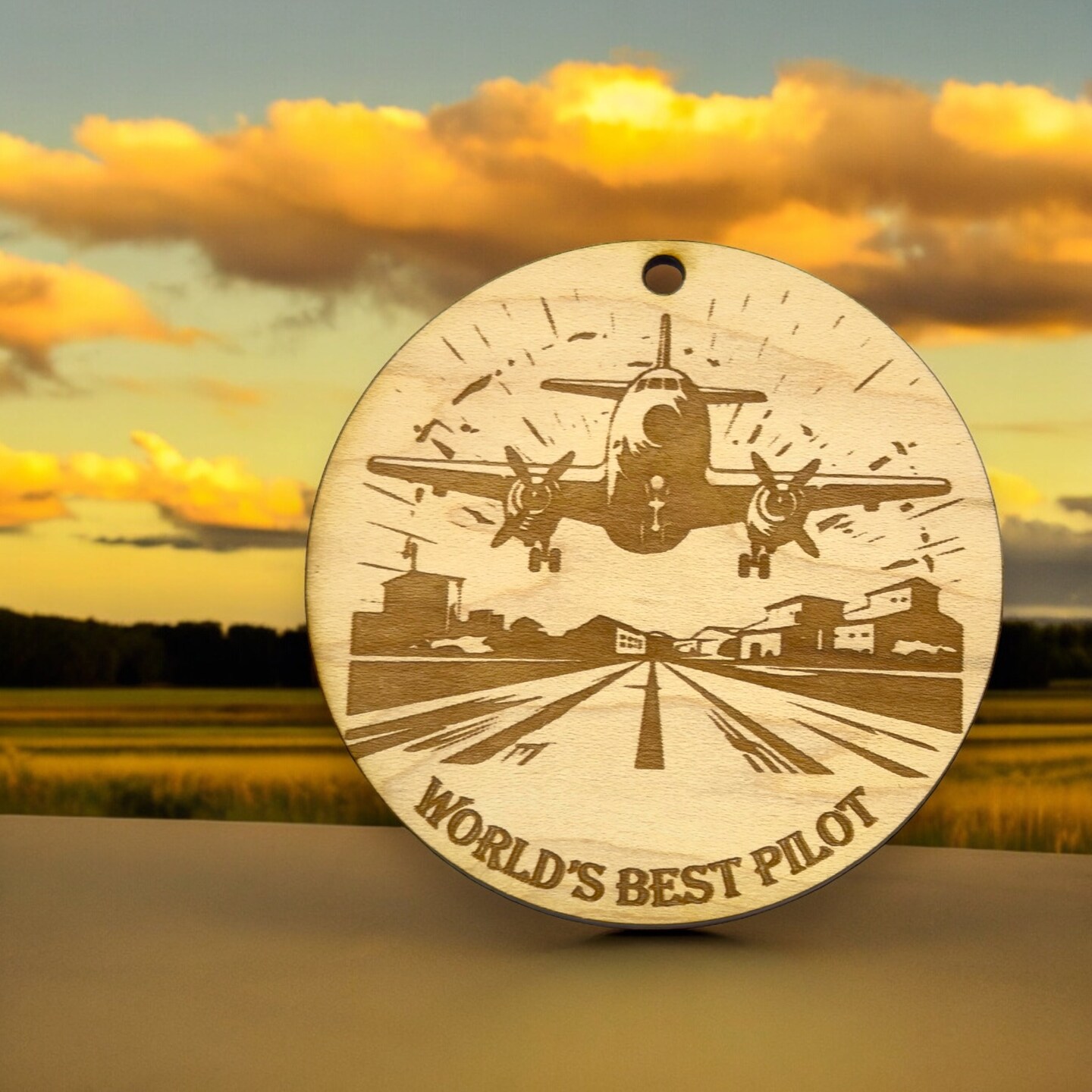 Ornament - Worlds Best Pilot Raw Wood