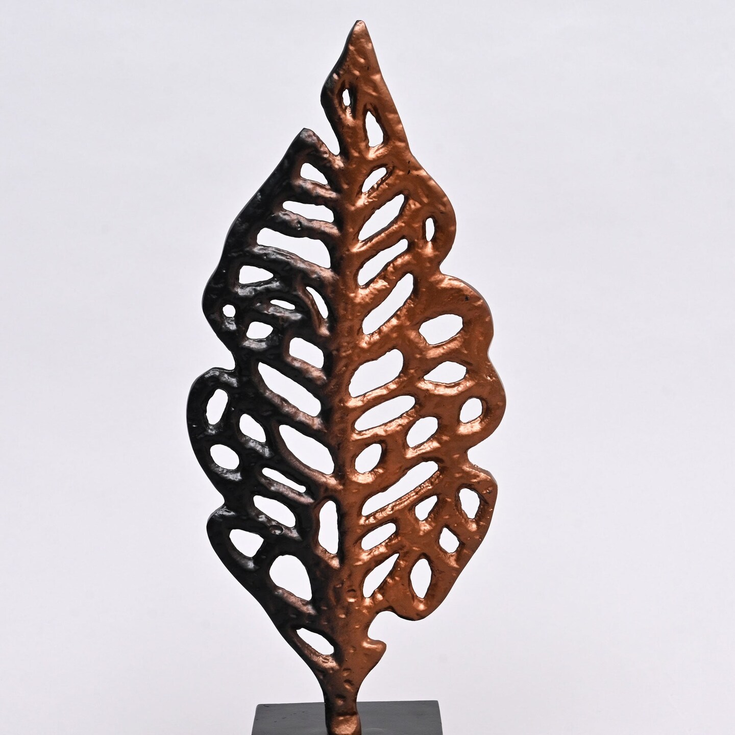 Ornate Gold Aluminum Leaf Table Sculpture on Black Base –17.5" Elegant Décor Accent