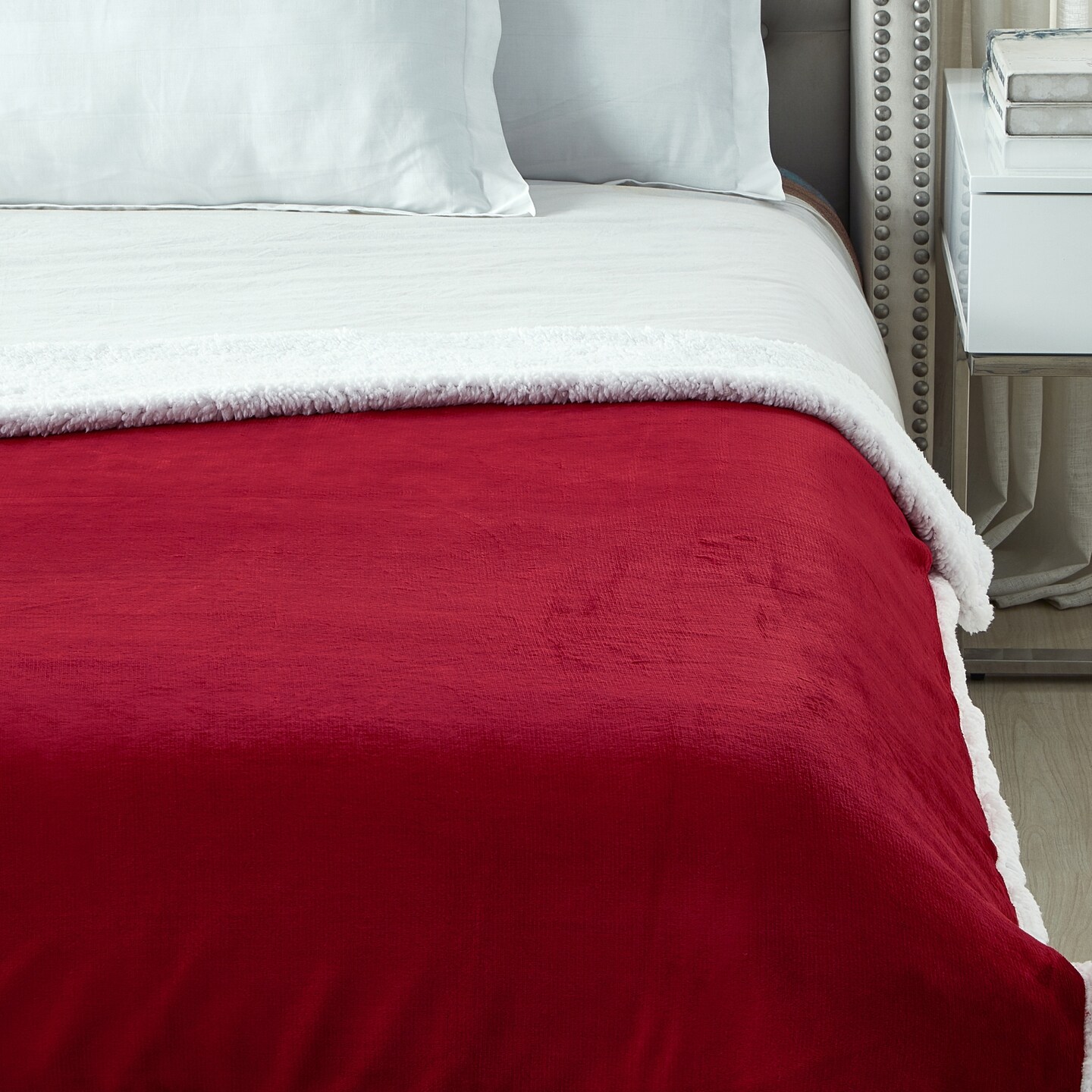 Orville Flannel Reversible Solid Sherpa Throw Blanket