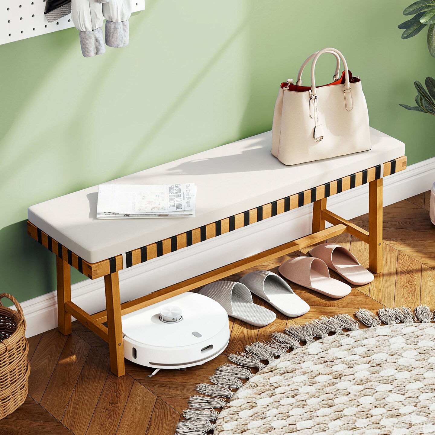 Outdoor Acacia Wood Bench 48 Inch with Thick Padded Cushion