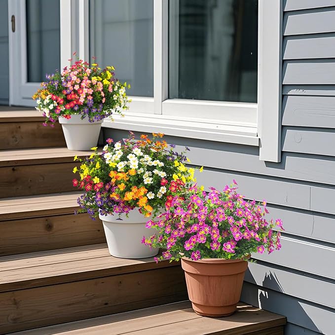 Outdoor Artificial Flowers UV Resistant & Fade Proof, 12 Pack Realistic Fake Flowers for Garden, Patio, Lawn Decor - Weatherproof Plastic Plants (Magenta)