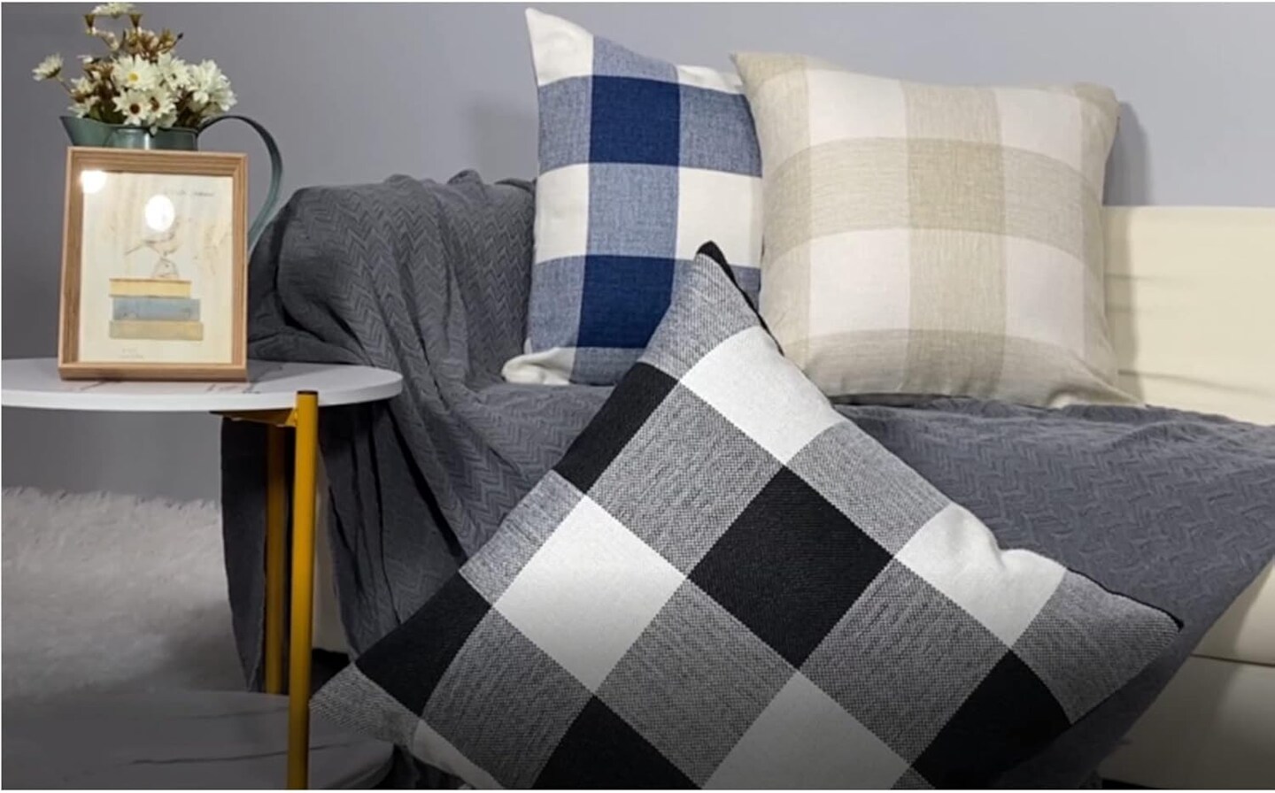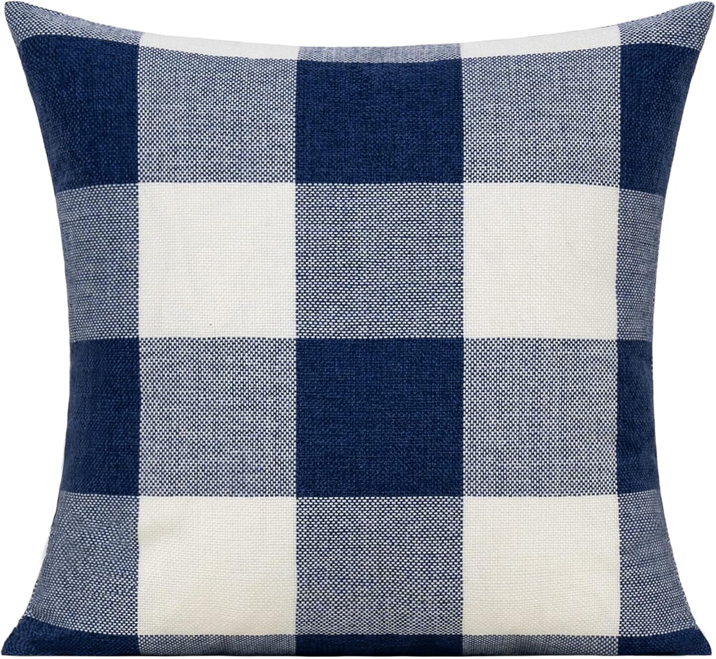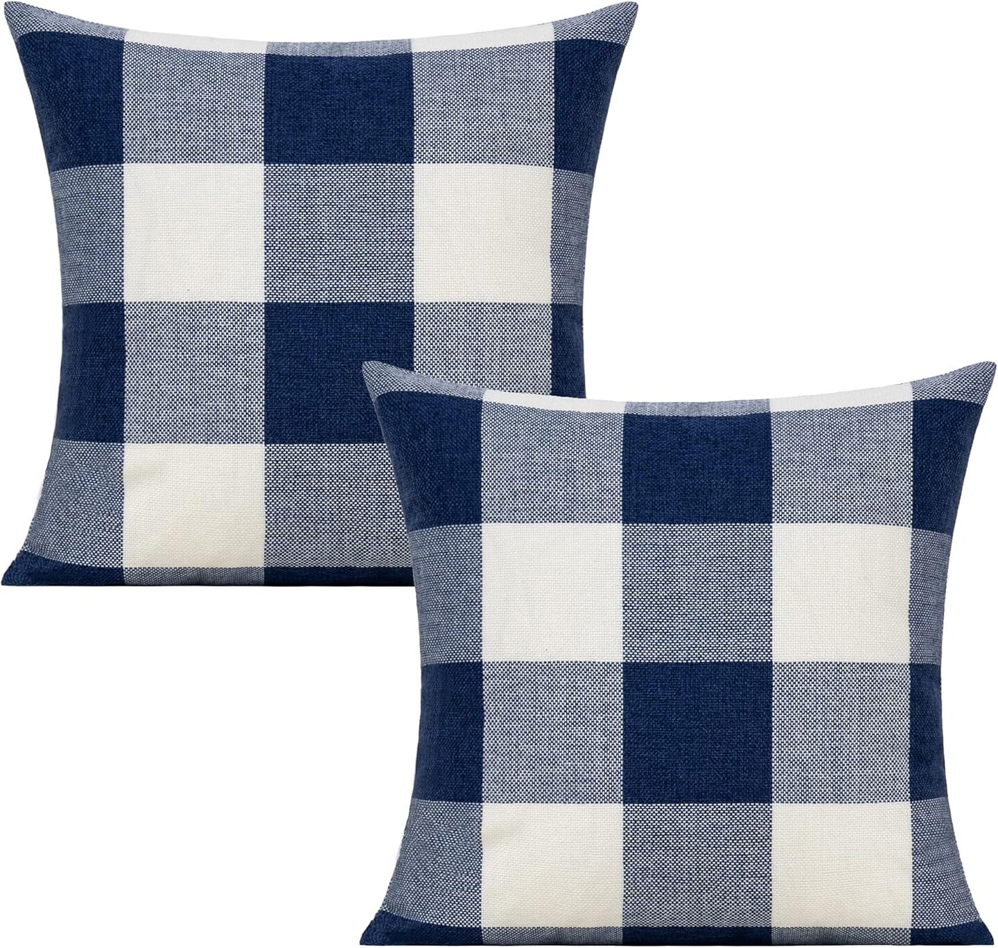 Outdoor Blue Throw Pillow Covers 18x18 Set of 2 Buffalo Plaids Check Summer Front Porch Decorative Gingham Cushion Cases Home Decor Farmhouse for Patio Furniture Couch Bed Sofa,Navy Blue White