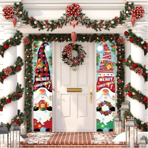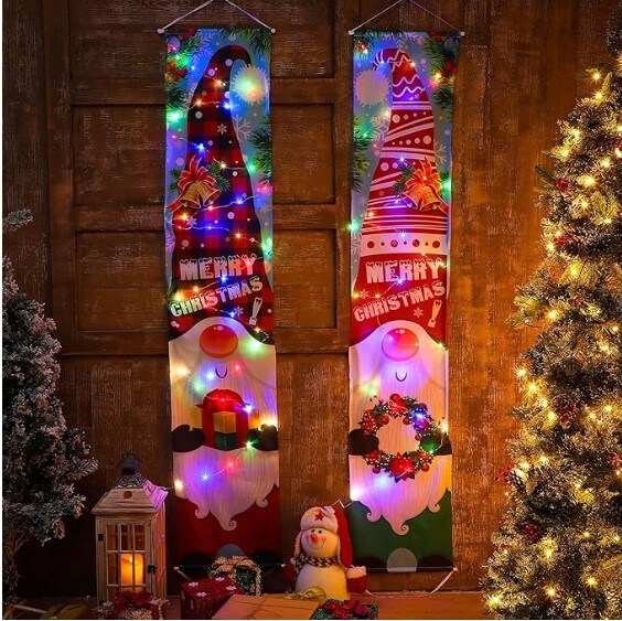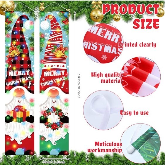 Outdoor Christmas Decorations in 2 Pieces Winter Holiday Door Banner Decoration with Light Strings and Pins for Yard Front Door Home Garage Wall Decor Xmas Hanging Porch Signs Banner