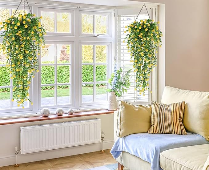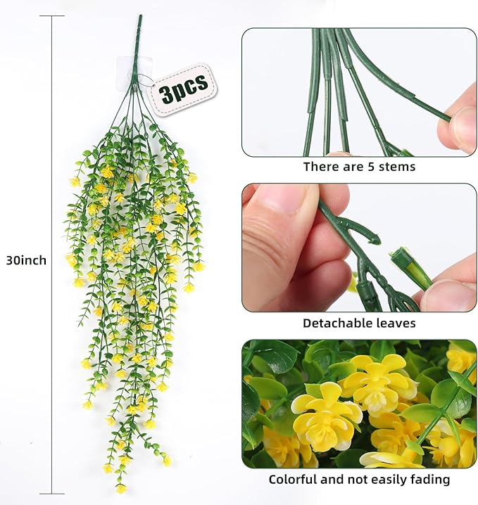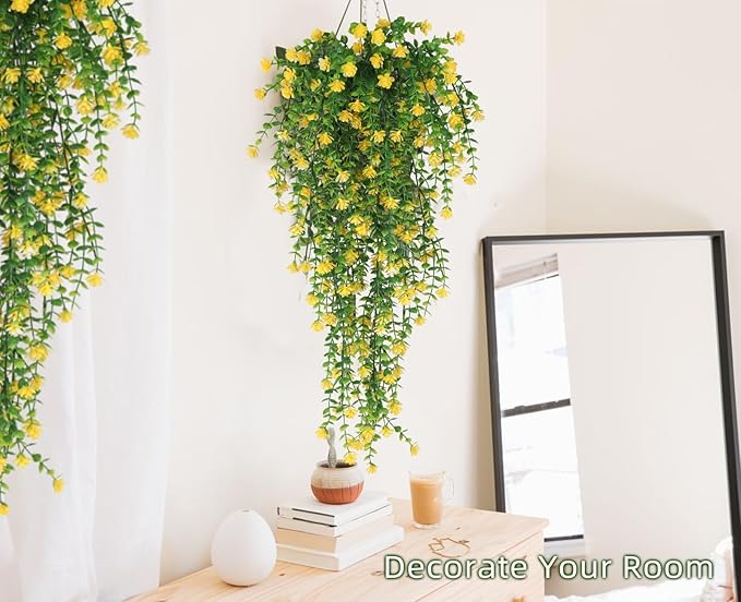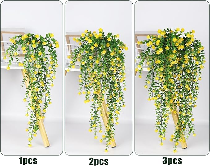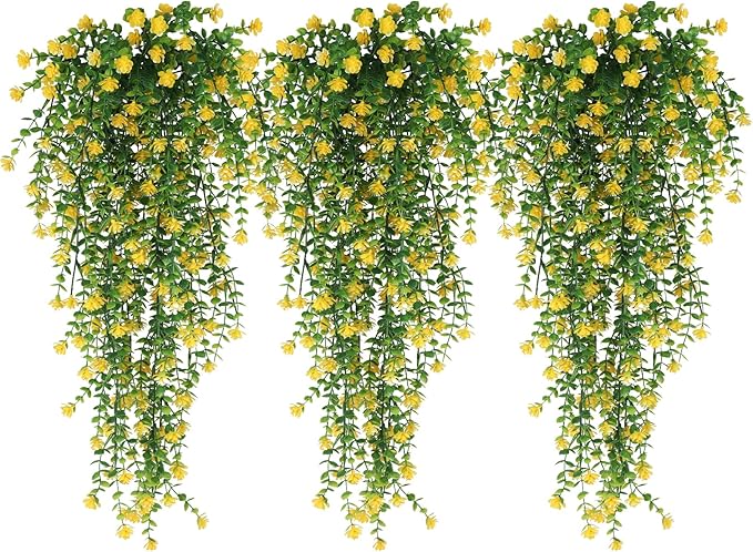 Outdoor Fake Hanging Plants,Hanging Plant Vine,Faux Eucalyptus Leafs Greenery Vine Plant Faux Plants Fake Plants Greenery for Jungle Theme Party Wedding Decoration(Yellow)
