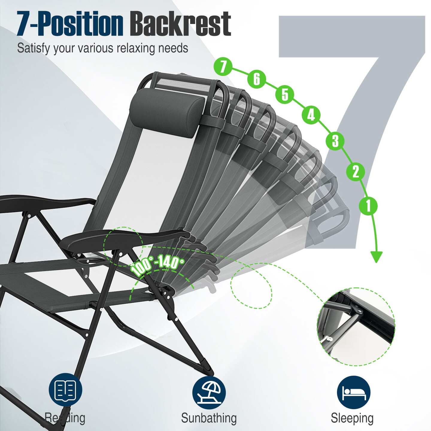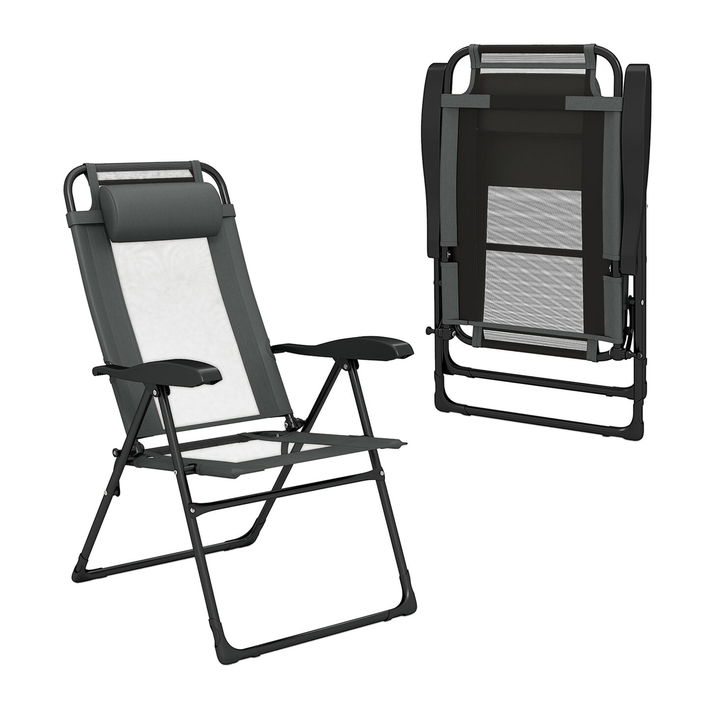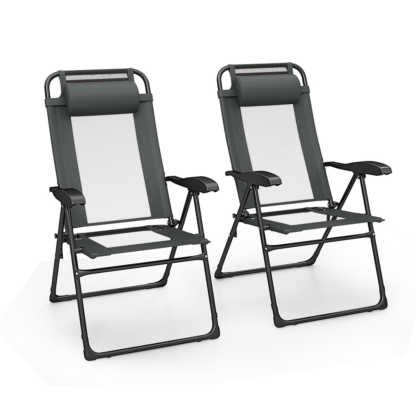 Outdoor Folding Chairs Set of 2 with Armrests and 7-Level Backrest-Gray
