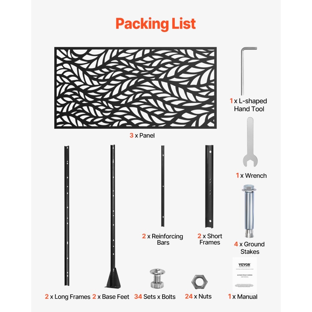 Outdoor Freestanding Metal Privacy Panel, 47"x72" Garden & Balcony Divider Black