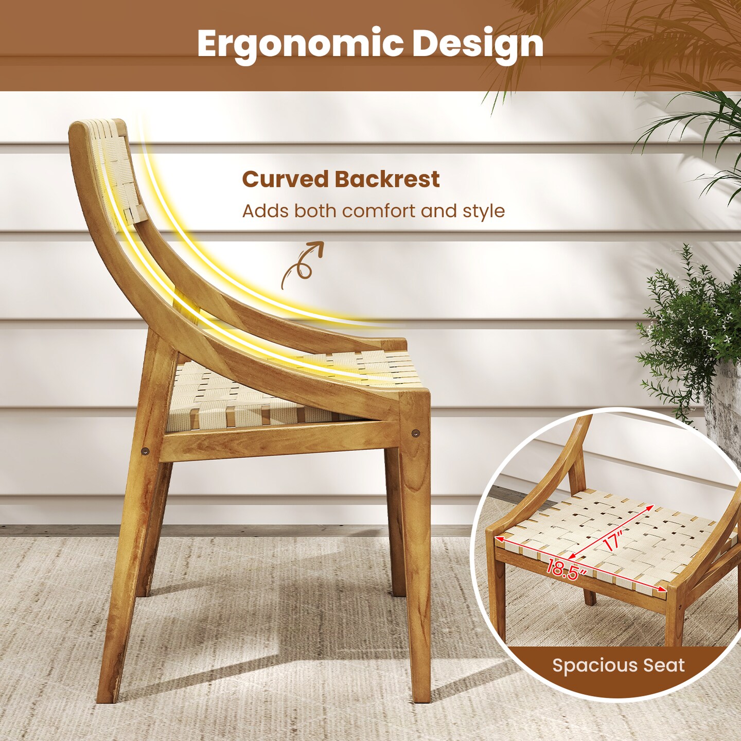 Outdoor Indoor Dining Chair with Webbed Seat and Backrest
