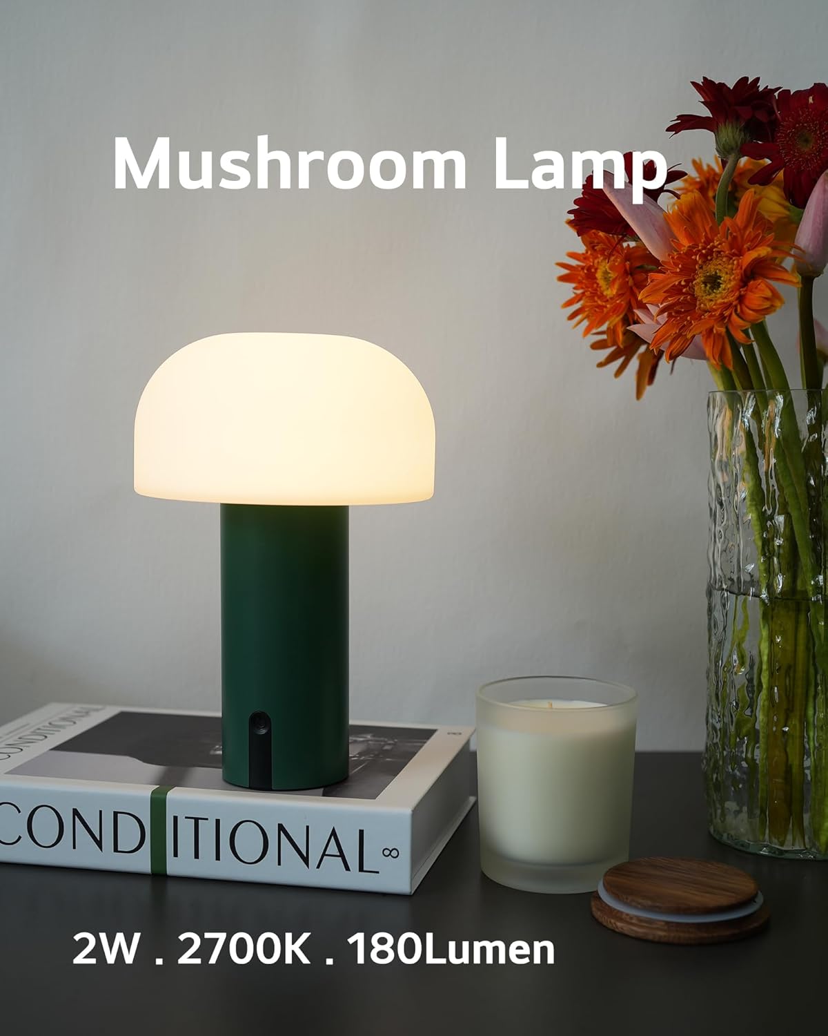 Outdoor Mushroom Table Lamp Rechargeable, Cordless Lamps for Patio Waterproof